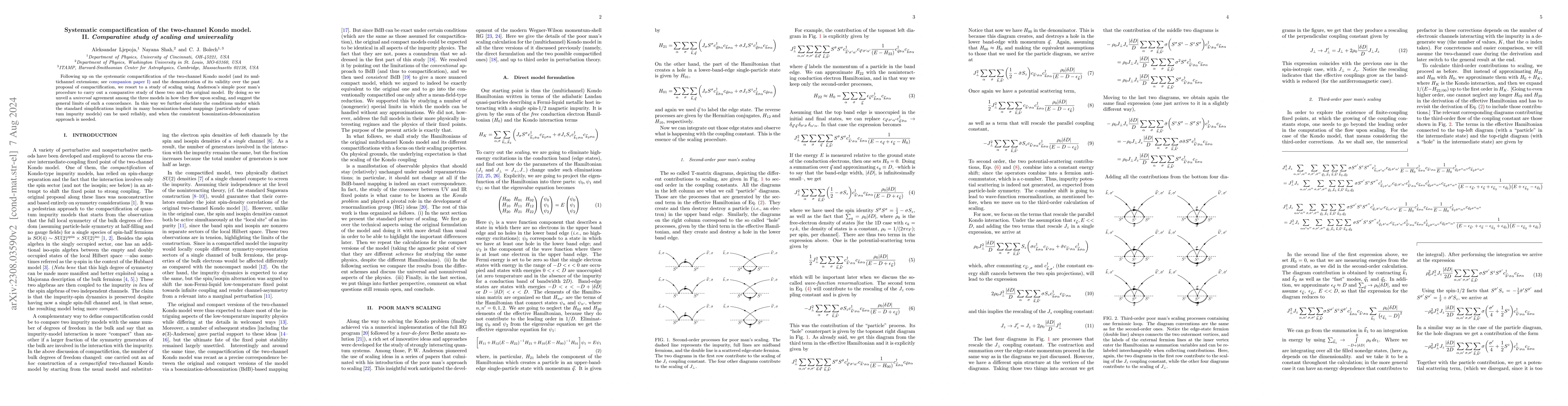 Following up on the systematic compactification of the two-channel Kondo model (and its multi-channel extensions; see companion paper I) and the demonstration of its validity over the past proposal of compactification, we resort to a study of scaling using Anderson's simple poor man's procedure to carry out a comparative study of these two and the original model. By doing so we unveil a universal agreement among the three models in how they flow upon scaling, and suggest what are the general limits of such a concordance. In this way we further elucidate the conditions under which the standard simplifications implicit in many bosonization-based mappings (particularly of quantum impurity models) can be used reliably, and when the consistent bosonization-debosonization approach is needed.