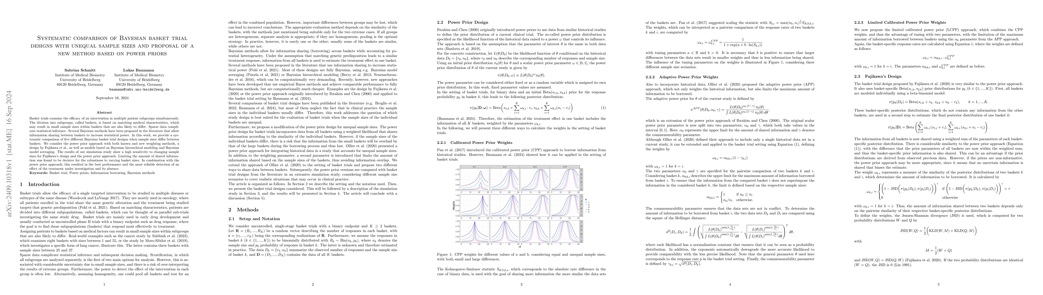 This paper systematically compares various Bayesian basket trial designs, particularly focusing on those with unequal sample sizes across subgroups. The study proposes a new method based on power priors that limits shared information to achieve robustness and reliable detection of treatment effects.