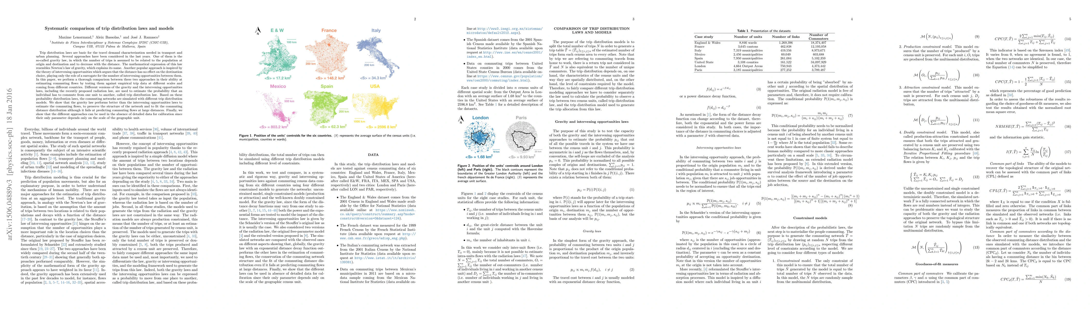 A study compares three trip distribution laws - gravity law, intervening opportunities law, and radiation law - to estimate commuting flows and network structure, finding that the gravity law performs best for large distances but can be used with limited data due to a single parameter.