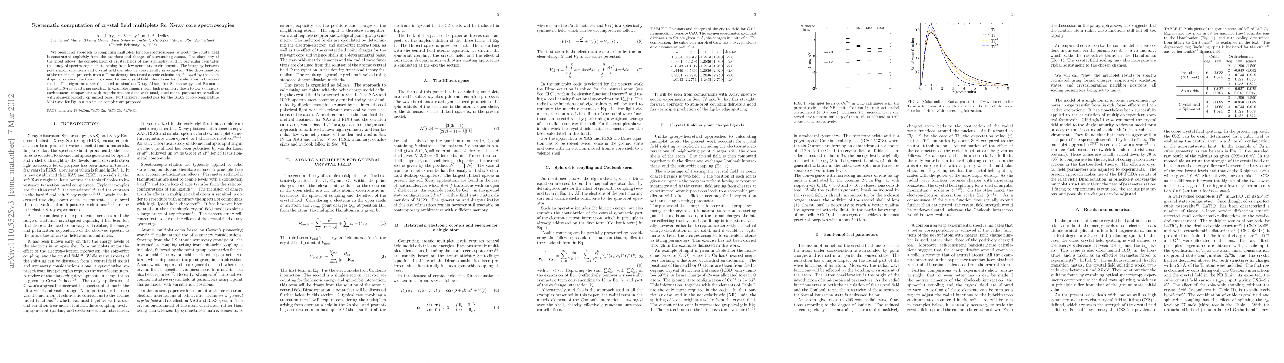 This paper introduces a novel method for computing crystal field multiplets in X-ray core spectroscopies, explicitly constructing the crystal field from surrounding atoms' positions and charges. The method allows for the study of spectroscopic effects in low symmetry environments and predicts X-ray spectra with good agreement to experimental data.