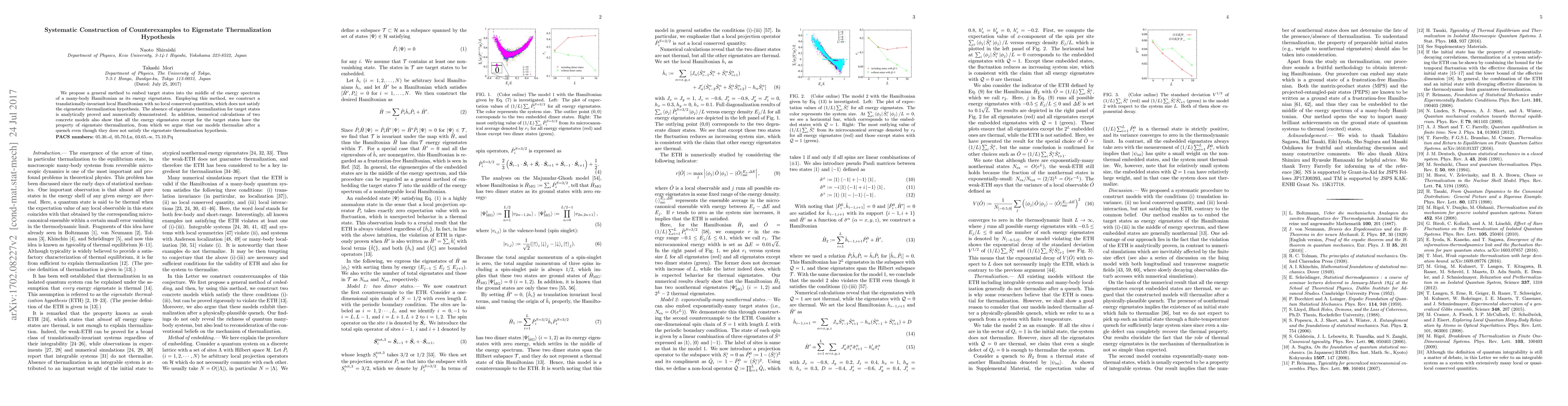 This paper proposes a method to construct counterexamples to the eigenstate thermalization hypothesis by embedding specific target states into the energy spectrum of a many-body Hamiltonian. It demonstrates a translationally-invariant local Hamiltonian that lacks local conserved quantities and does not satisfy the eigenstate thermalization hypothesis, proving the absence analytically and showing numerically that all other eigenstates thermalize.