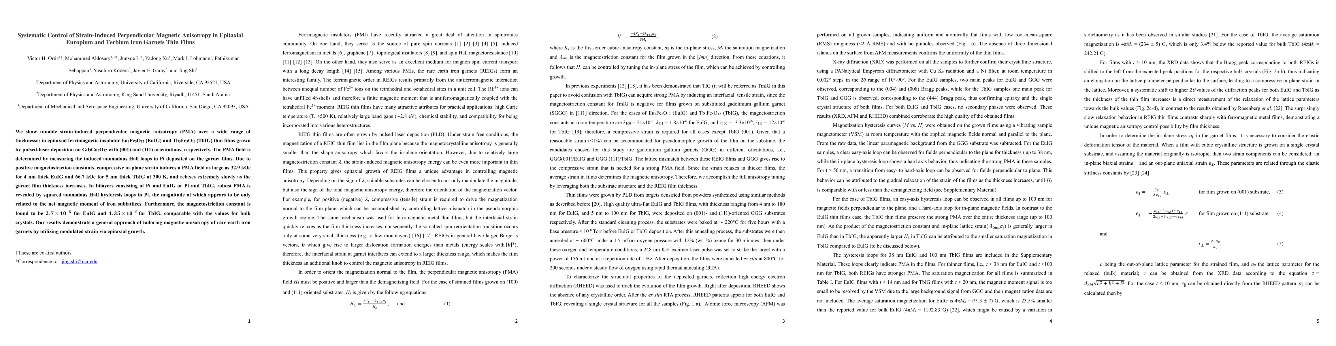 This study demonstrates tunable strain-induced perpendicular magnetic anisotropy in epitaxial EuIG and TbIG thin films via epitaxial growth, showing a large PMA field up to 66.7 kOe in 5 nm TbIG due to compressive strain, and reveals the potential for controlling magnetic anisotropy in rare earth iron garnets through strain modulation.