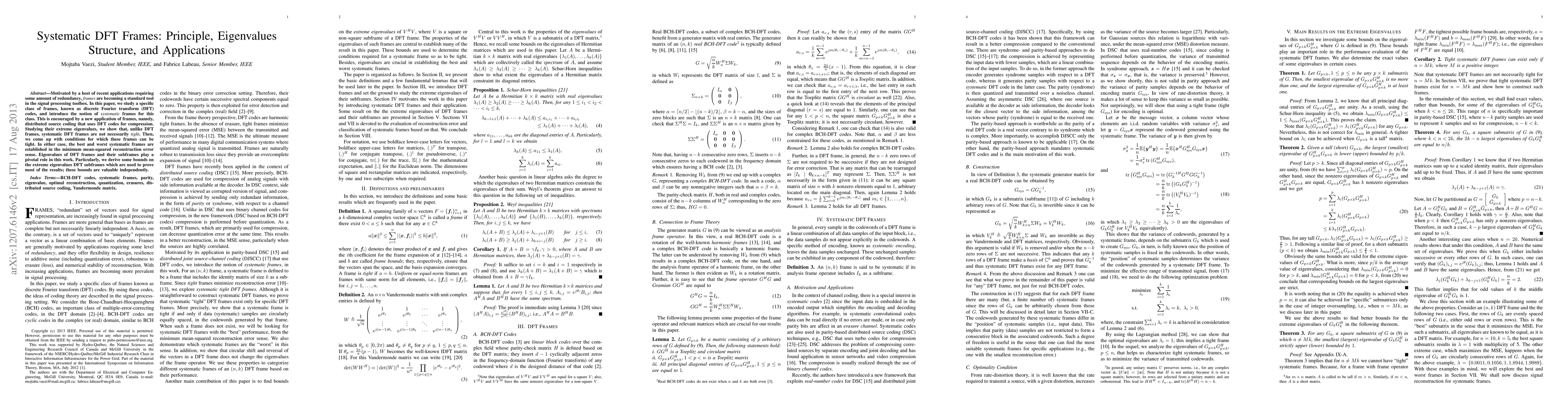 Motivated by a host of recent applications requiring some amount of redundancy, frames are becoming a standard tool in the signal processing toolbox. In this paper, we study a specific class of frames, known as discrete Fourier transform (DFT) codes, and introduce the notion of systematic frames for this class. This is encouraged by a new application of frames, namely, distributed source coding that uses DFT codes for compression. Studying their extreme eigenvalues, we show that, unlike DFT frames, systematic DFT frames are not necessarily tight. Then, we come up with conditions for which these frames can be tight. In either case, the best and worst systematic frames are established in the minimum mean-squared reconstruction error sense. Eigenvalues of DFT frames and their subframes play a pivotal role in this work. Particularly, we derive some bounds on the extreme eigenvalues DFT subframes which are used to prove most of the results; these bounds are valuable independently.