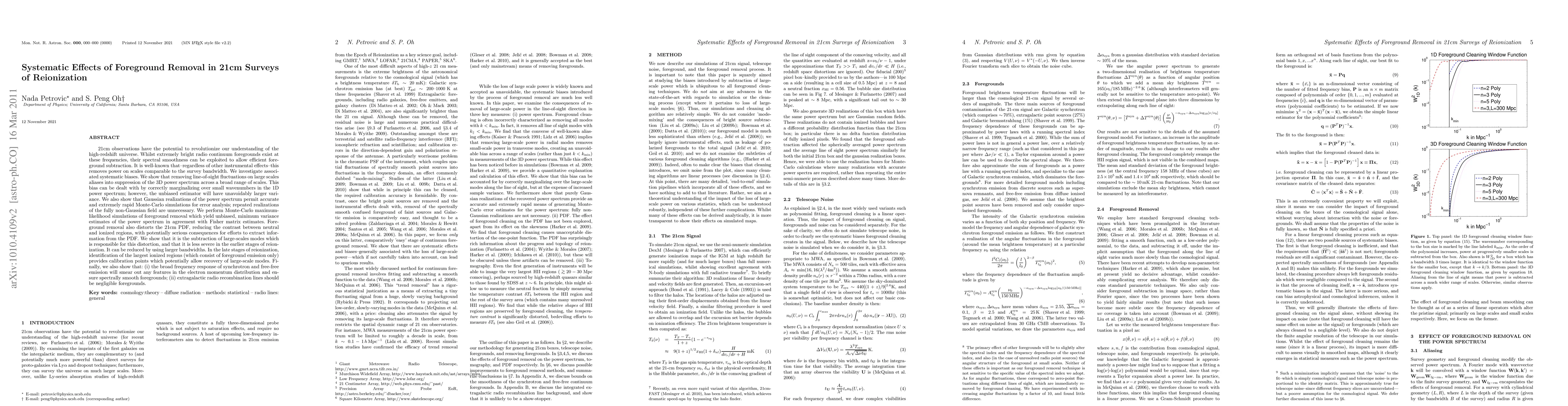 This paper investigates systematic biases in 21cm surveys of reionization due to foreground removal, showing that it aliasingly suppresses the 3D power spectrum. It proposes marginalization over small k in the 1D power spectrum to eliminate bias, albeit at the cost of increased variance. The study also demonstrates that Gaussian realizations of the power spectrum allow for rapid Monte-Carlo simulations, and highlights methods to mitigate distortions in the 21cm probability distribution function.