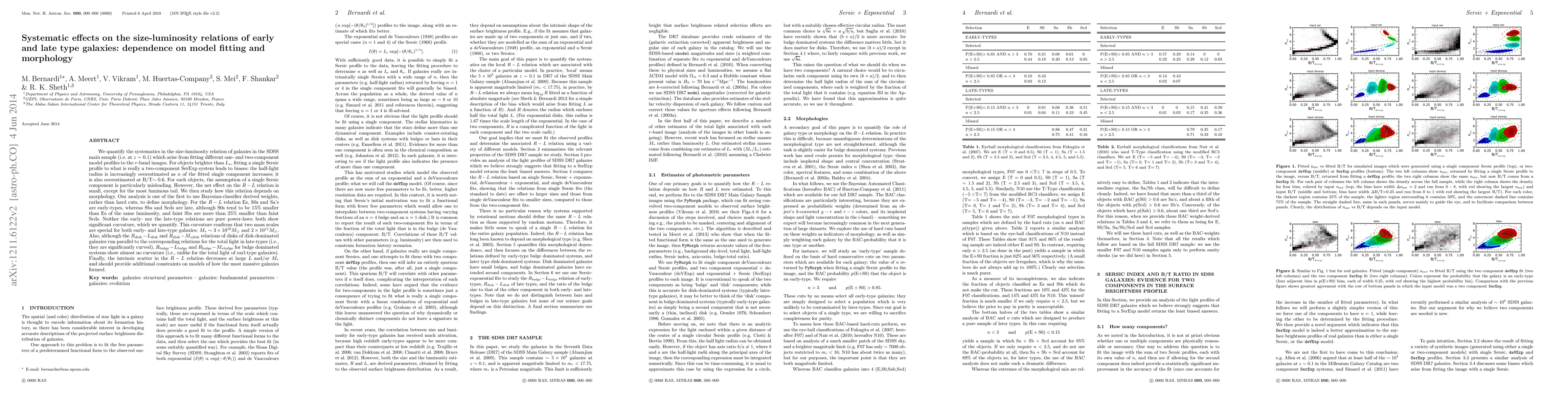 We quantify the systematics in the size-luminosity relation of galaxies in the SDSS main sample which arise from fitting different 1- and 2-component model profiles to the images. In objects brighter than L*, fitting a single Sersic profile to what is really a two-component SerExp system leads to biases: the half-light radius is increasingly overestimated as n of the fitted single component increases; it is also overestimated at B/T ~ 0.6. However, the net effect on the R-L relation is small, except for the most luminous tail, where it curves upwards towards larger sizes. We also study how this relation depends on morphological type. Our analysis is one of the first to use Bayesian-classifier derived weights, rather than hard cuts, to define morphology. Crudely, there appear to be only two relations: one for early-types (Es, S0s and Sa's) and another for late-types (Sbs and Scds). However, closer inspection shows that within the early-type sample S0s tend to be 15% smaller than Es of the same luminosity, and, among faint late types, Sbs are more than 25% smaller than Scds. Neither the early- nor the late-type relations are pure power-laws: both show significant curvature, which we quantify. However, the R-L relations of the bulges of early-types are almost pure power laws. Our analysis confirms that two mass scales are special for early-type galaxies: M* = 3e10 and 2e11 Msun. These same mass scales are also special for late types: there is almost no correlation between R and M* below the former, and almost no late-types above the latter. We also show that the intrinsic scatter around the relation decreases at large luminosity and/or stellar mass; this should provide additional constraints on models of how the most massive galaxies formed.