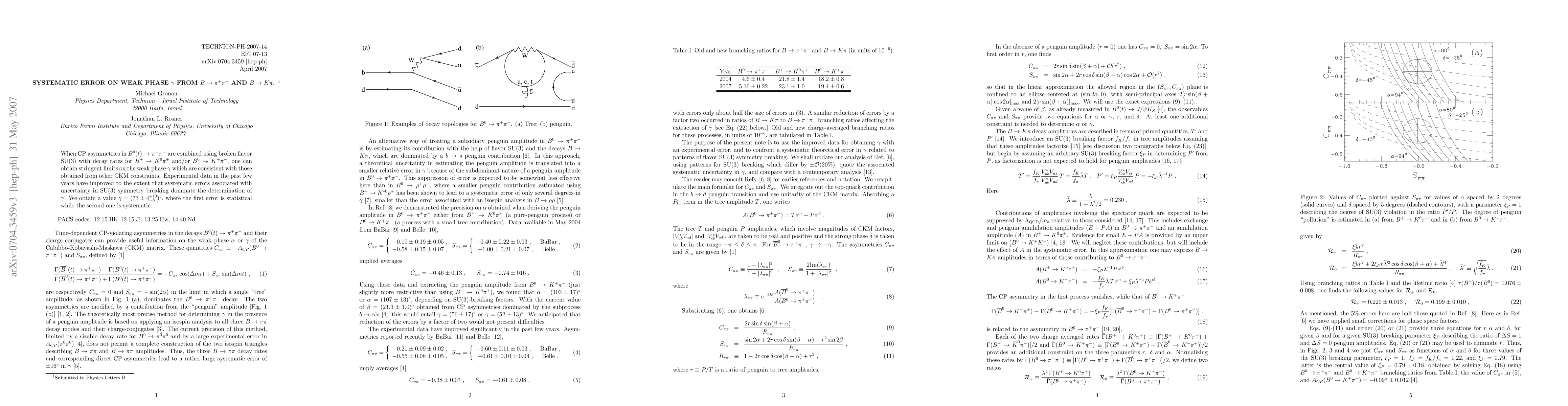 When CP asymmetries in $B^0(t)\to \pi^+ \pi^-$ are combined using broken flavor SU(3) with decay rates for $B^+\to K^0\pi^+$ and/or $B^0\to K^+\pi^-$, one can obtain stringent limits on the weak phase $\gamma$ which are consistent with those obtained from other CKM constraints. Experimental data in the past few years have improved to the extent that systematic errors associated with uncertainty in SU(3) symmetry breaking dominate the determination of $\gamma$. We obtain a value $\gamma =(73 \pm 4^{+10}_{-8})^\circ$, where the first error is statistical while the second one is systematic.