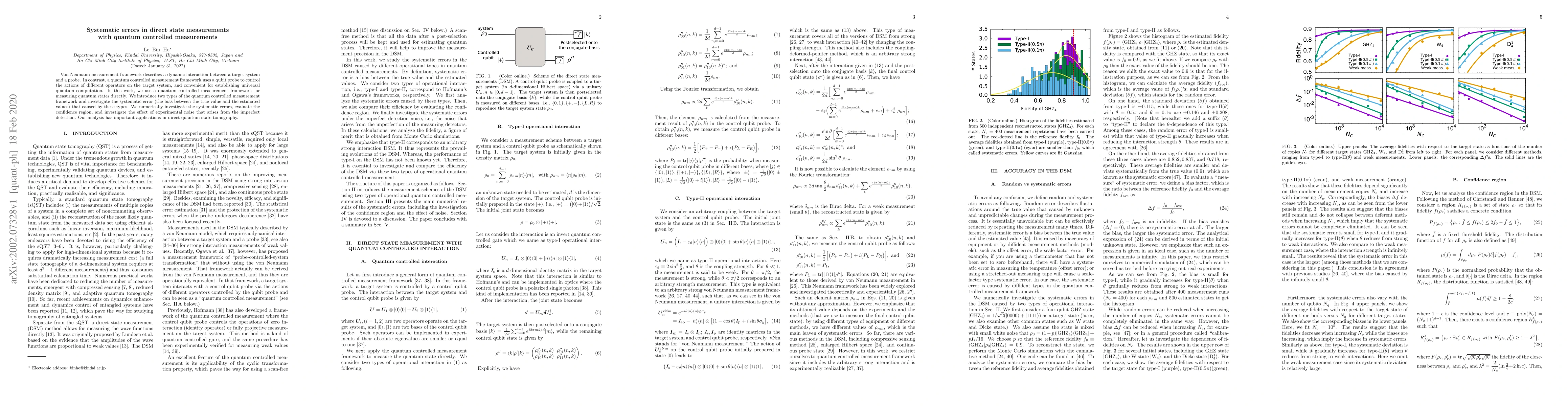 This paper explores systematic errors in direct quantum state measurements using a quantum controlled measurement framework, identifying two types of systematic errors and evaluating their impact. The study numerically investigates these errors, assesses the confidence region, and considers the influence of experimental noise, with implications for direct quantum state tomography.