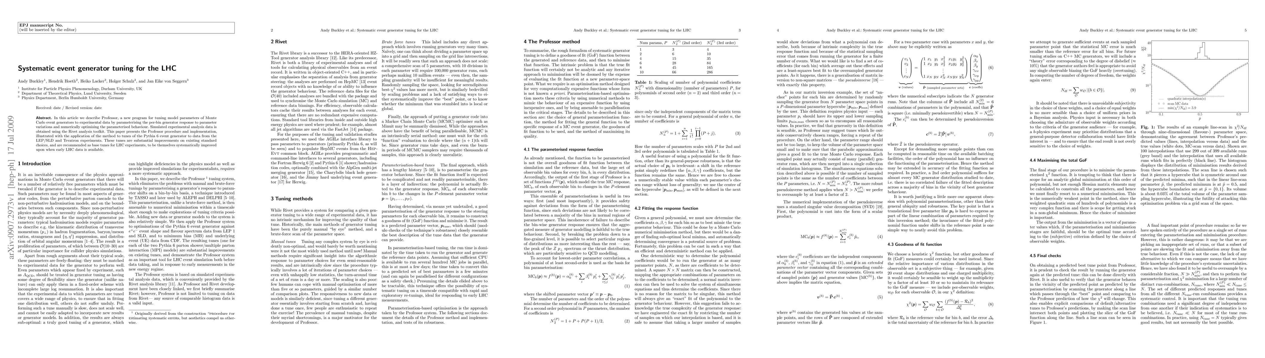 In this article we describe Professor, a new program for tuning model parameters of Monte Carlo event generators to experimental data by parameterising the per-bin generator response to parameter variations and numerically optimising the parameterised behaviour. Simulated experimental analysis data is obtained using the Rivet analysis toolkit. This paper presents the Professor procedure and implementation, illustrated with the application of the method to tunes of the Pythia 6 event generator to data from the LEP/SLD and Tevatron experiments. These tunes are substantial improvements on existing standard choices, and are recommended as base tunes for LHC experiments, to be themselves systematically improved upon when early LHC data is available.