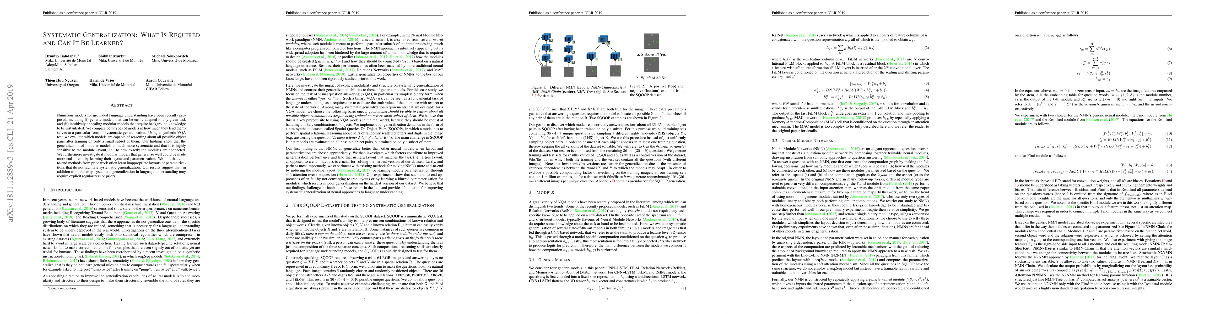 This paper compares generic and modular models for grounded language understanding, finding that modular models exhibit better systematic generalization but are sensitive to module layout. It concludes that end-to-end learning often fails to optimize for systematic generalization, suggesting the need for explicit regularizers or priors.
