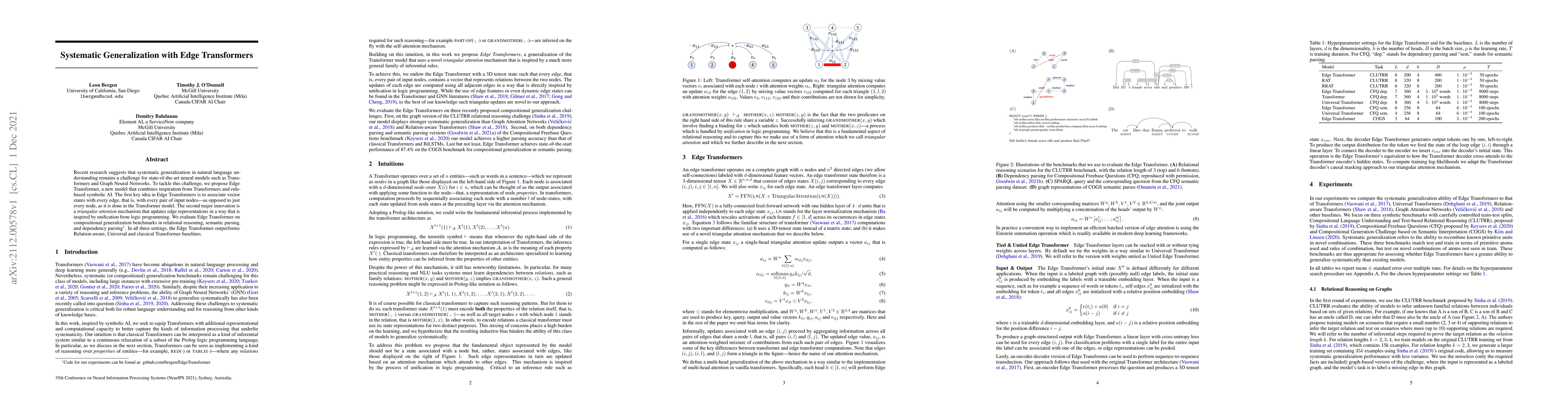 The Edge Transformer model combines Transformer and symbolic AI principles to enhance systematic generalization in natural language understanding, outperforming traditional Transformer and other baseline models in relational reasoning, semantic parsing, and dependency parsing. Its key features include edge-based vector states and a triangular attention mechanism.