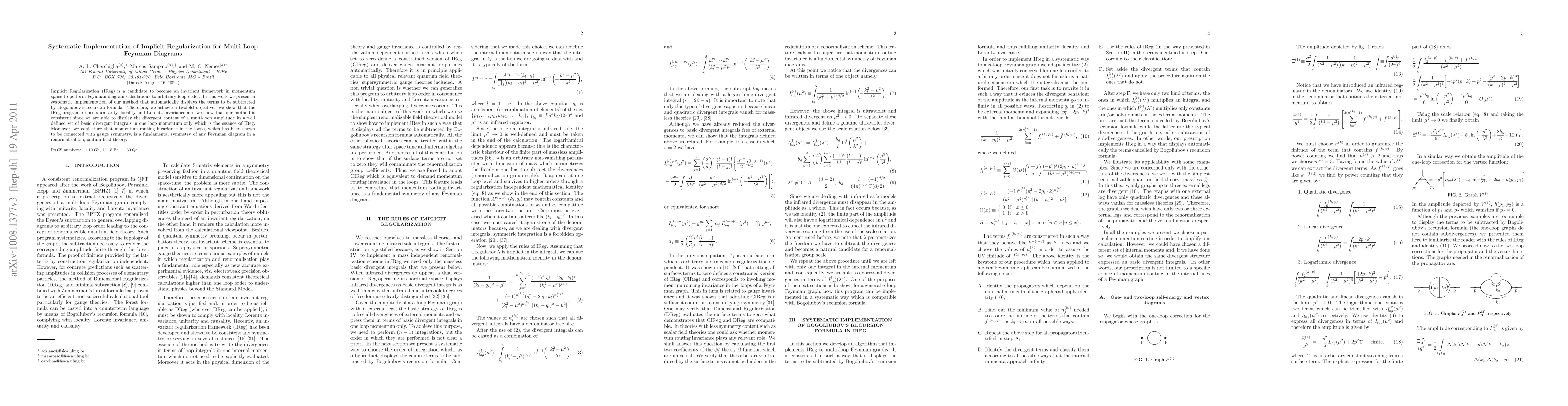 This paper systematically implements Implicit Regularization (IReg) for calculating multi-loop Feynman diagrams, ensuring unitarity, locality, and Lorentz invariance. It demonstrates the method's consistency by expressing the divergent content in a defined set of basic integrals, and conjectures momentum routing invariance as a fundamental symmetry in renormalizable quantum field theories.