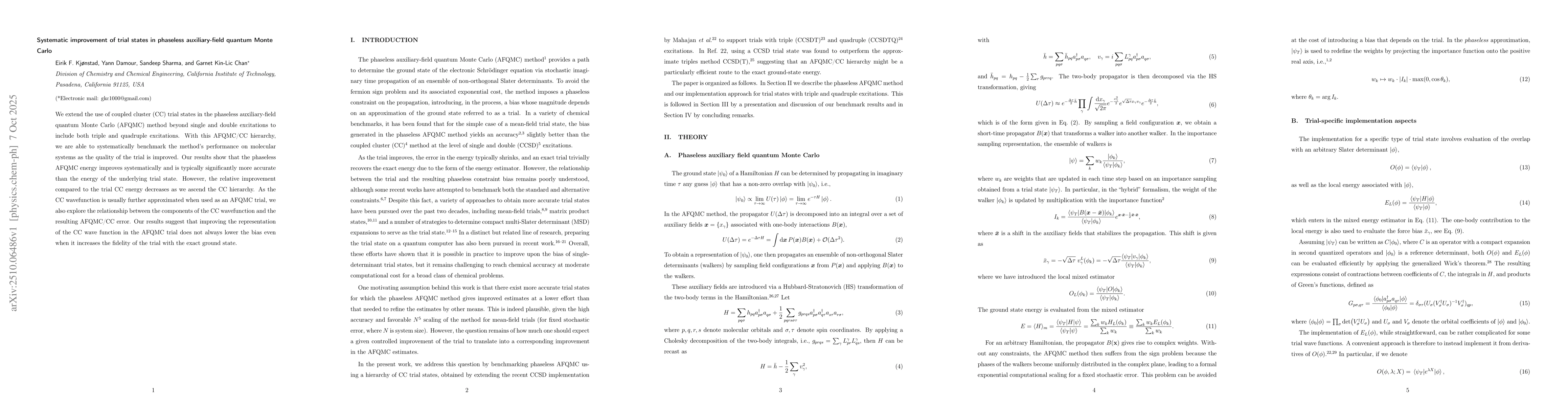 The work establishes a framework for systematically improving AFQMC accuracy through hierarchical CC trial wavefunctions, with rigorous error analysis and computational scaling characterization.