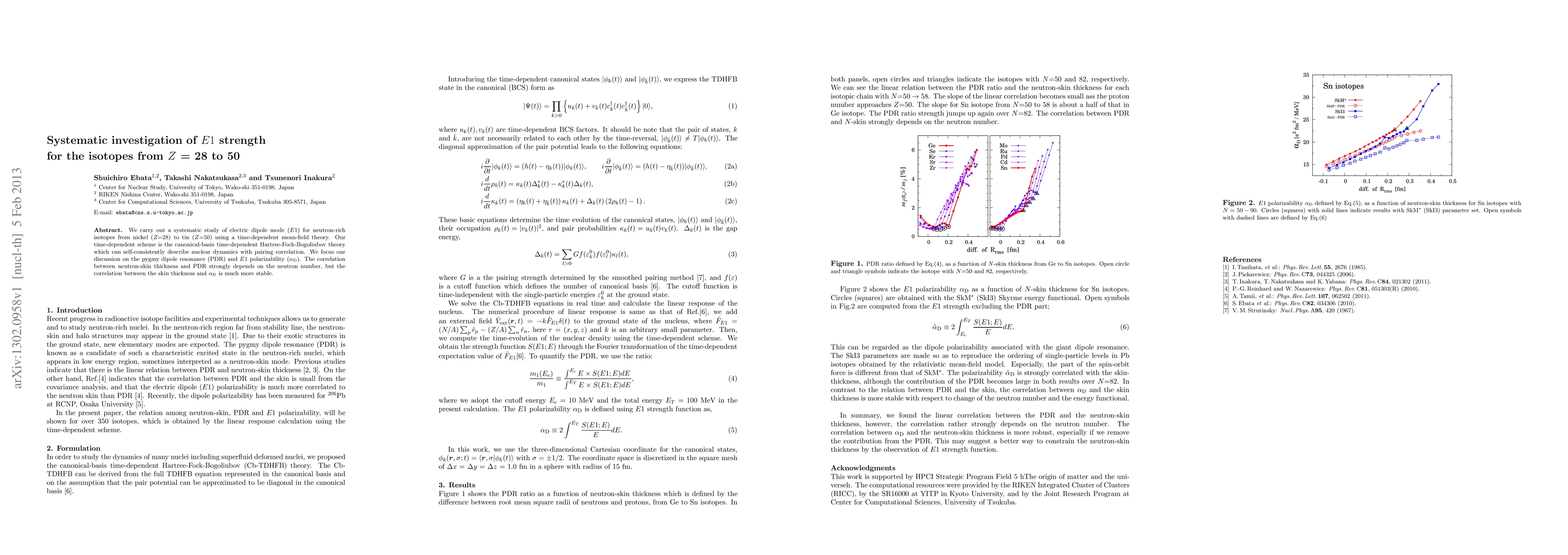 We carry out a systematic study of electric dipole mode (E1) for neutron-rich isotopes from nickel (Z=28) to tin (Z=50) using a time-dependent mean-field theory. Our time-dependent scheme is the canonical-basis time-dependent Hartree-Fock-Bogoliubov theory which can self-consistently describe nuclear dynamics with pairing correlation. We focus our discussion on the pygmy dipole resonance (PDR) and E1 polarizability. The correlation between neutron-skin thickness and PDR strongly depends on the neutron number, but the correlation between the skin thickness and E1 polarizability is much more stable.