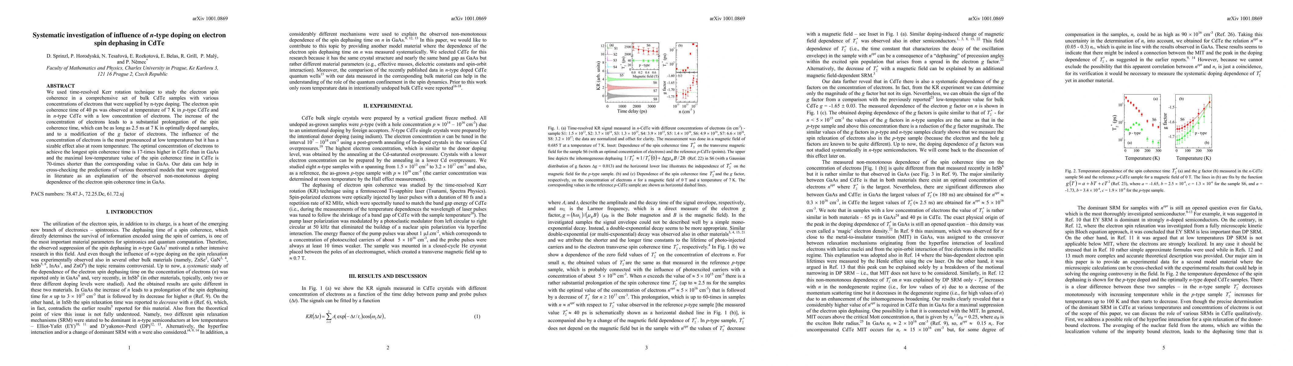 Researchers studied how n-type doping affects electron spin coherence in CdTe, finding that higher concentrations of electrons can prolong spin coherence time up to 2.5 ns at 7K.