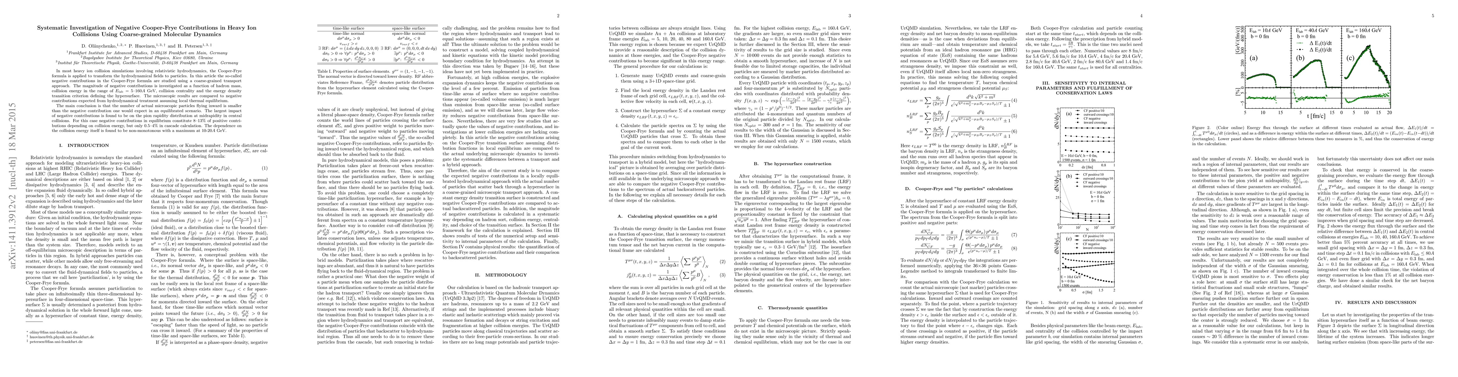This paper investigates negative contributions in the Cooper-Frye formula during heavy ion collisions using a coarse-grained molecular dynamics approach. It finds that actual microscopic particles flying inward are fewer than expected in an equilibrated scenario, with the largest effect observed in pion rapidity distribution at midrapidity in central collisions.