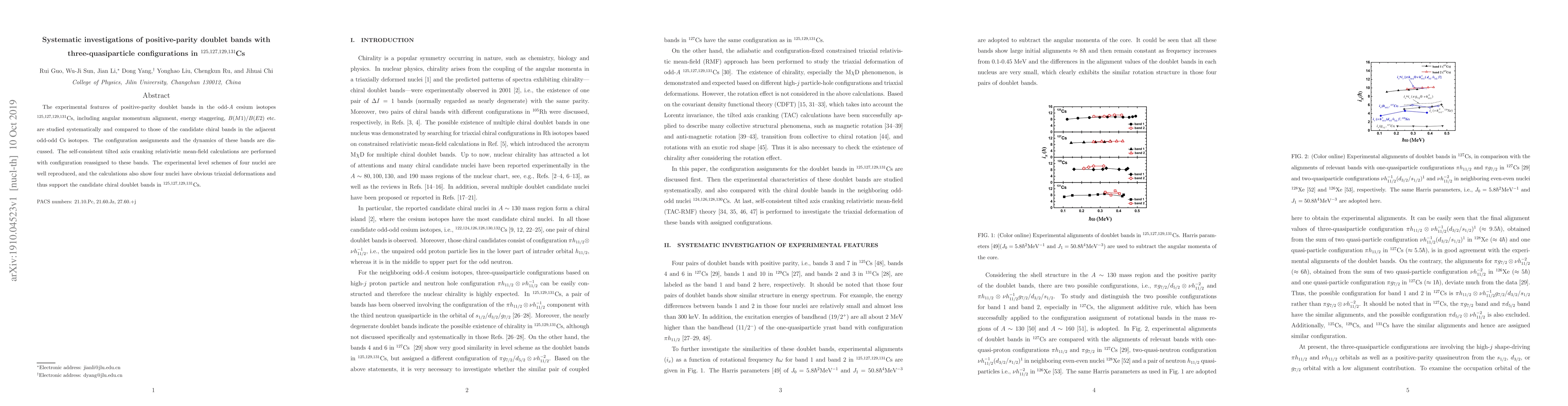 The experimental features of positive-parity doublet bands in the odd-\emph{A} cesium isotopes $^{125,127,129,131}$Cs, including angular momentum alignment, energy staggering, $B(M1)/B(E2)$ etc. are studied systematically and compared to those of the candidate chiral bands in the adjacent odd-odd Cs isotopes. The configuration assignments and the dynamics of these bands are discussed. The self-consistent tilted axis cranking relativistic mean-field calculations are performed with configuration reassigned to these bands. The experimental level schemes of four nuclei are well reproduced, and the calculations also show four nuclei have obvious triaxial deformations and thus support the candidate chiral doublet bands in $^{125,127,129,131}$Cs.