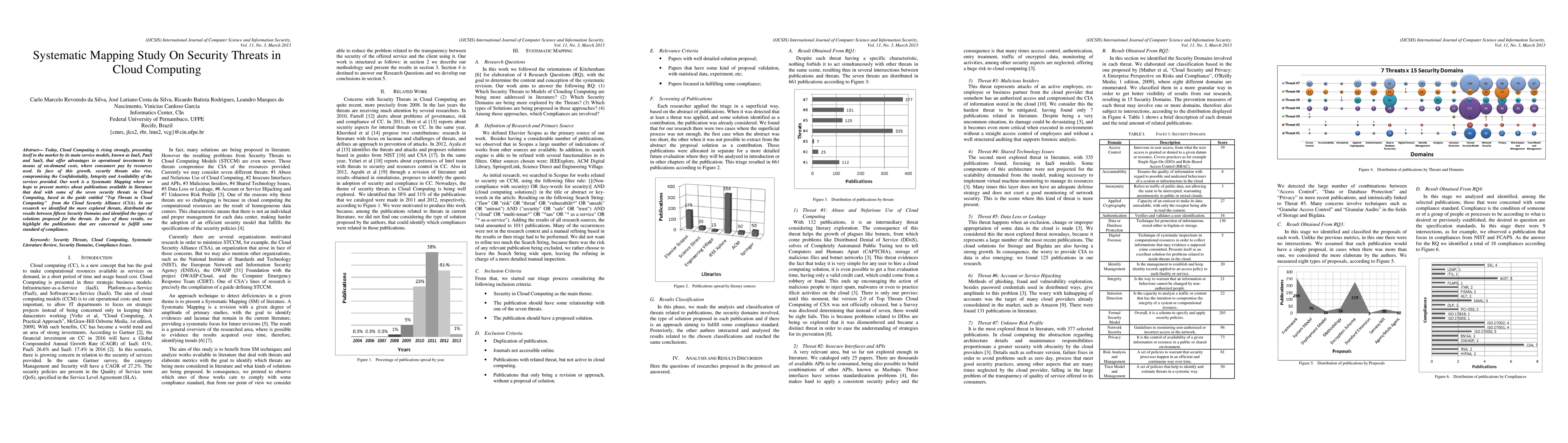 This research conducts a systematic mapping of security threats in Cloud Computing, focusing on seven threats from the Cloud Security Alliance. It categorizes the threats across fifteen security domains and identifies prevalent solutions, highlighting publications that address compliance standards.