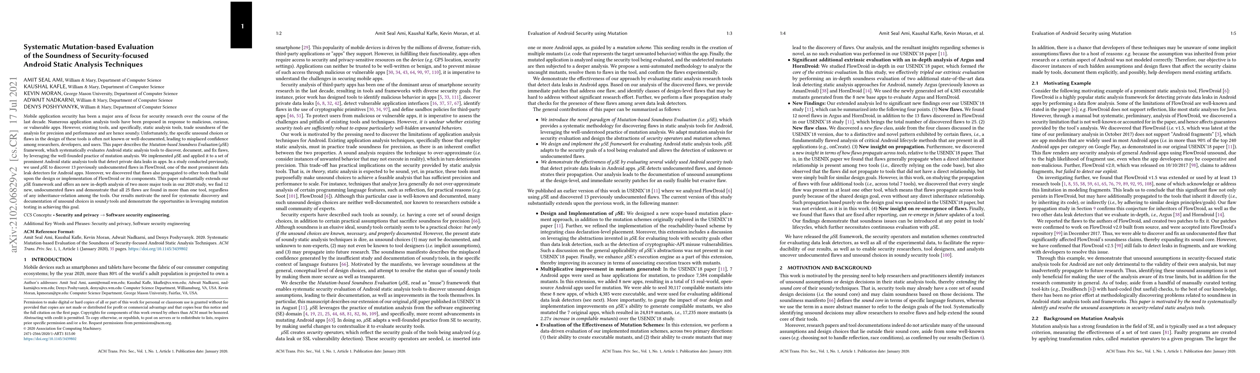 This paper introduces a systematic mutation-based evaluation framework ($\mu$SE) to uncover and document flaws in Android static analysis tools that detect private data leaks. The study identified 25 previously undocumented flaws in prominent tools, including FlowDroid, highlighting the need for rigorous evaluation to improve security tool soundness.