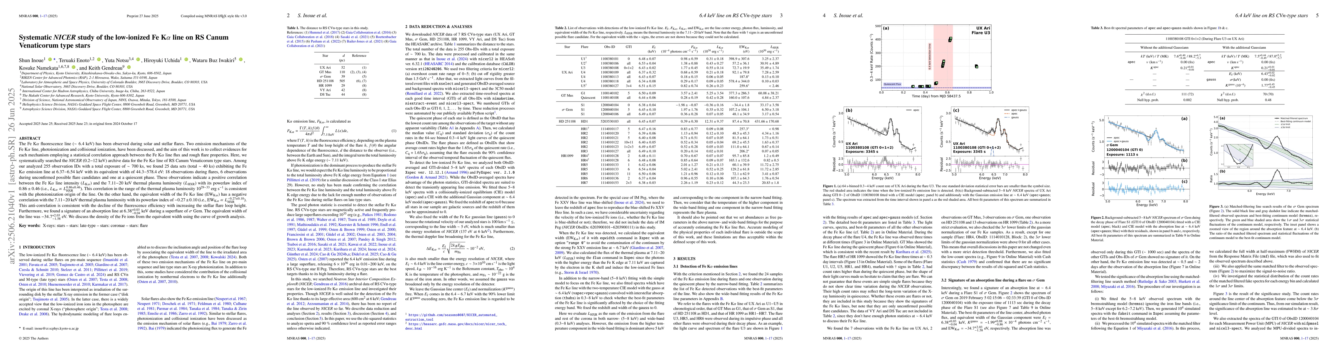 The study systematically analyzed NICER archival data of RS Canum Venaticorum stars, focusing on detecting and characterizing the low-ionized Fe Kα line during various flare phases using spectral fitting and correlation analysis.