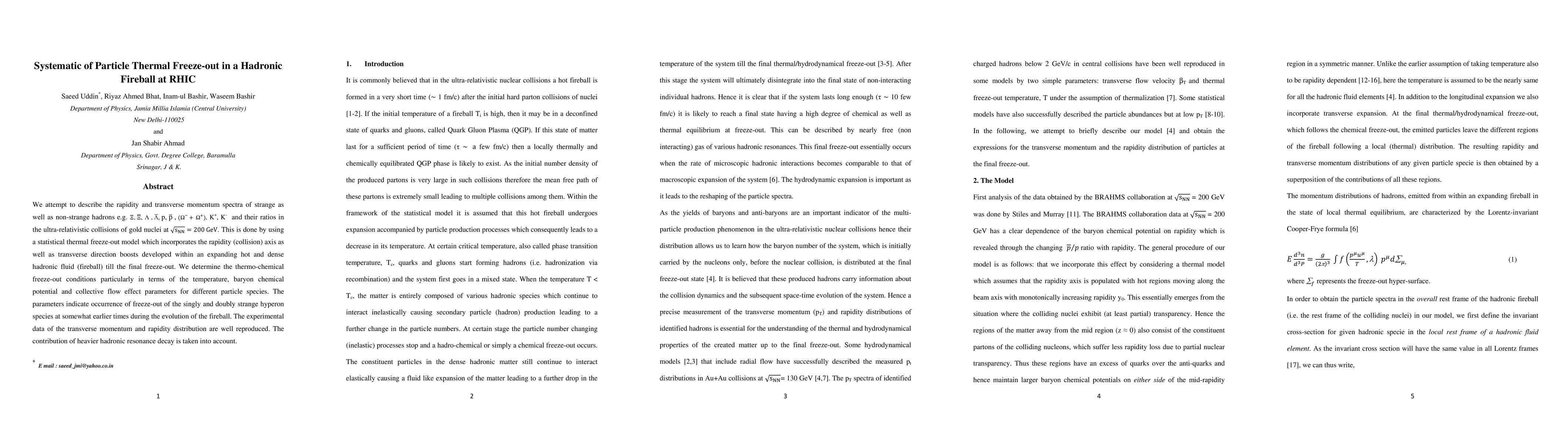 This paper uses a statistical thermal freeze-out model to analyze the rapidity and transverse momentum spectra of various hadrons in gold-gold collisions at RHIC, determining the freeze-out conditions and showing good agreement with experimental data, with a focus on the early freeze-out of strange hyperons.
