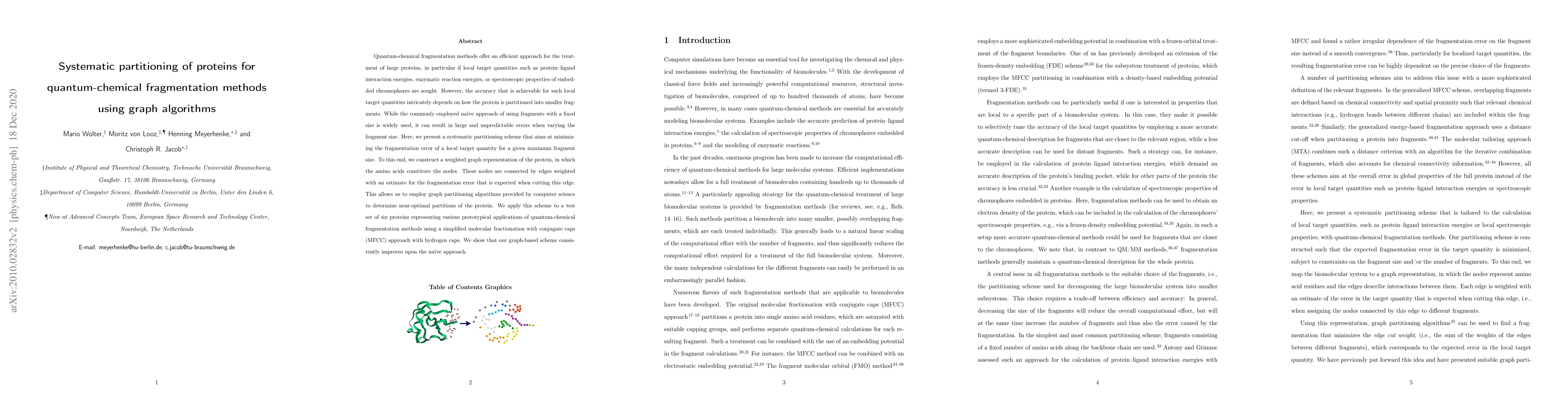 This research introduces a systematic partitioning scheme for proteins using graph algorithms to minimize fragmentation errors in quantum-chemical methods. The method, tested on six proteins, consistently outperforms the naive fixed-size fragmentation approach, offering improved accuracy for local target quantities in protein studies.