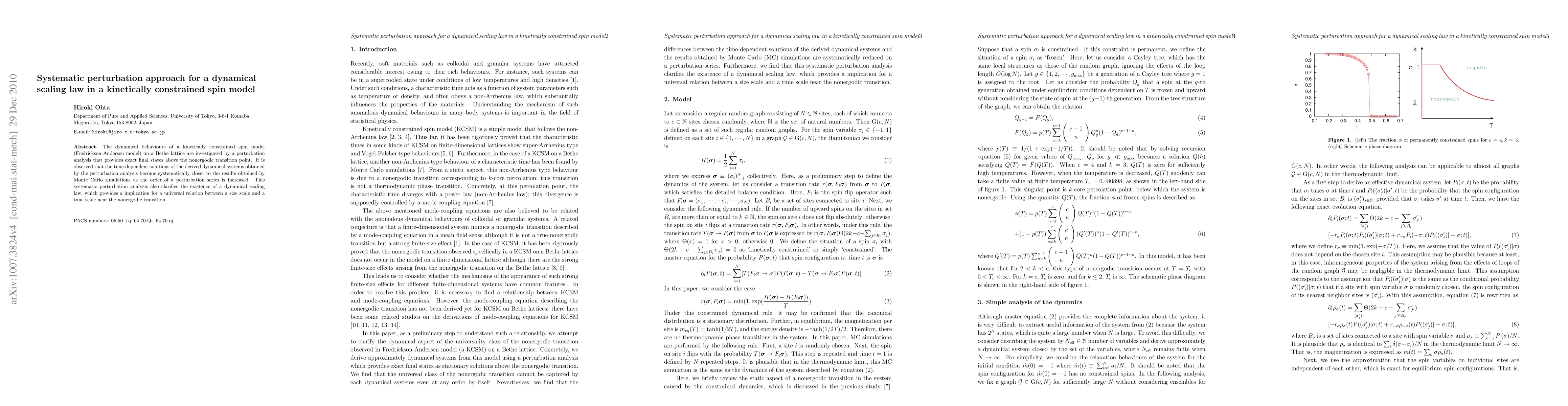 The paper introduces a systematic perturbation approach for dynamical systems in kinetically constrained spin models, leading to higher-order approximations and revealing a dynamical scaling law near the nonergodic transition.