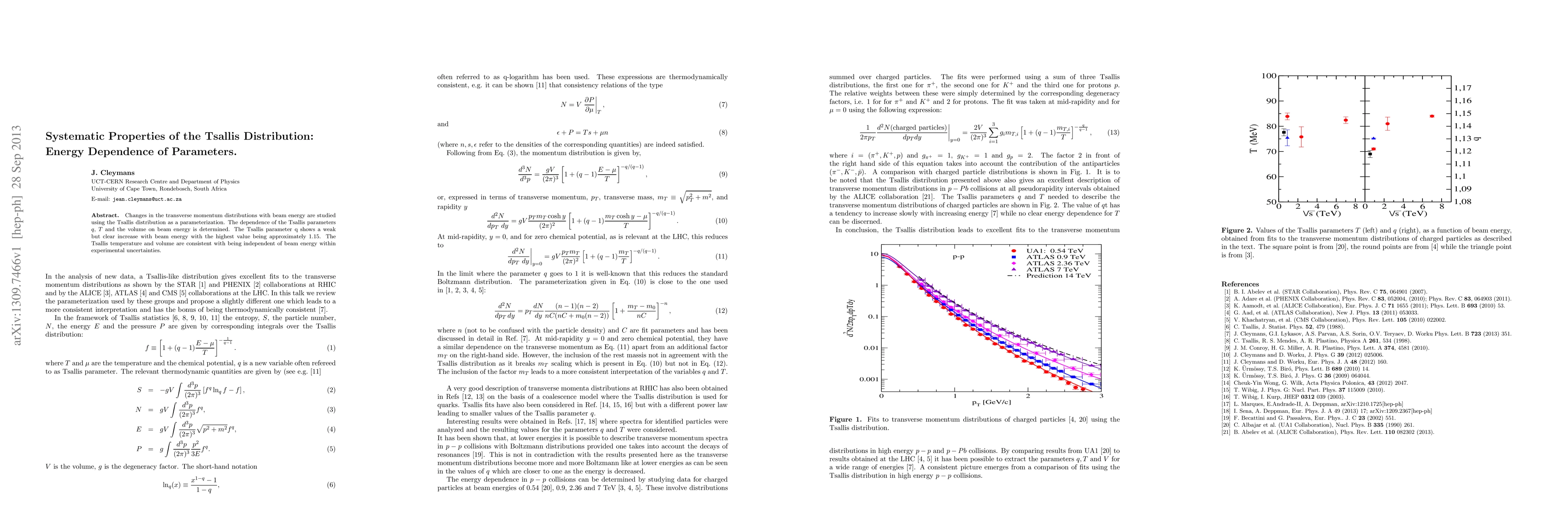 Changes in the transverse momentum distributions with beam energy are studied using the Tsallis distribution as a parameterization. The dependence of the Tsallis parameters q, T and the volume on beam energy is determined. The Tsallis parameter q shows a weak but clear increase with beam energy with the highest value being approximately 1.15. The Tsallis temperature and volume are consistent with being independent of beam energy within experimental uncertainties.