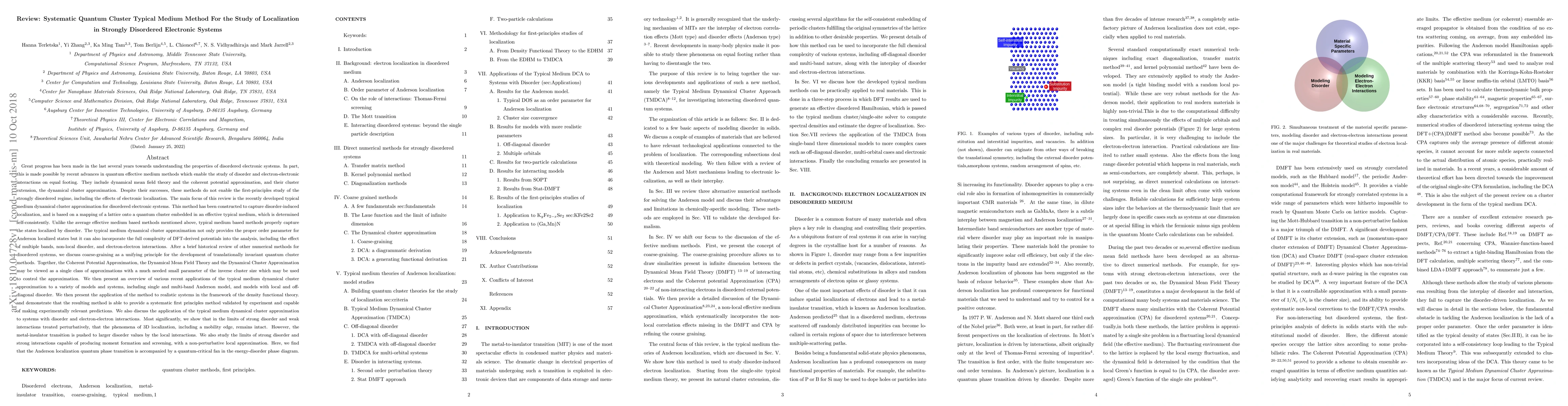 This paper reviews the typical medium dynamical cluster approximation, a novel quantum method developed to study localization in strongly disordered electronic systems, and discusses its applications to various models and real materials using density functional theory.
