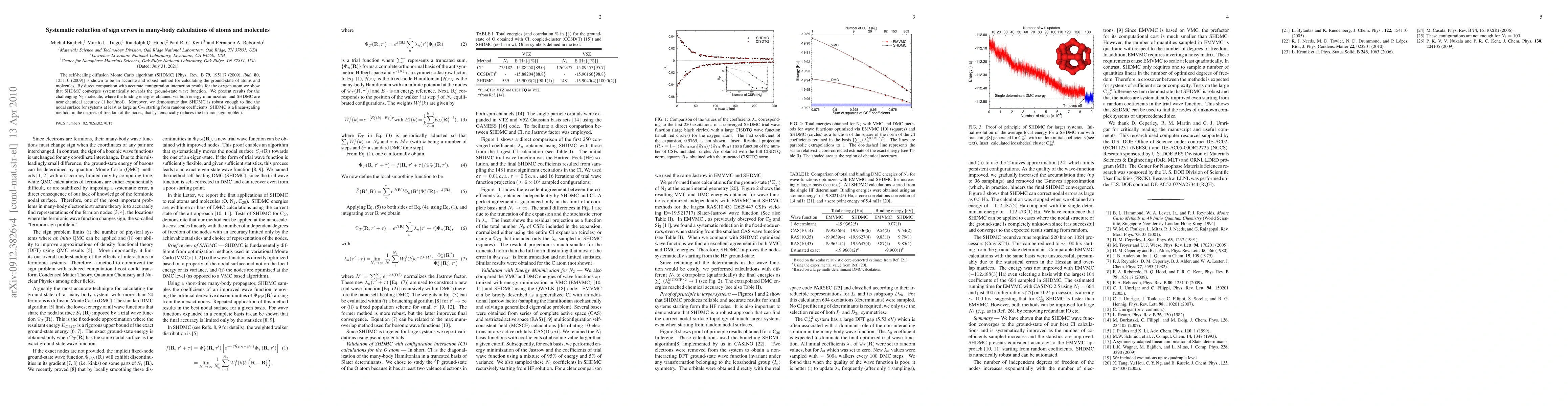 The self-healing diffusion Monte Carlo algorithm (SHDMC) [Phys. Rev. B {\bf 79}, 195117 (2009), {\it ibid.} {\bf 80}, 125110 (2009)] is shown to be an accurate and robust method for calculating the ground state of atoms and molecules. By direct comparison with accurate configuration interaction results for the oxygen atom we show that SHDMC converges systematically towards the ground-state wave function. We present results for the challenging N$_2$ molecule, where the binding energies obtained via both energy minimization and SHDMC are near chemical accuracy (1 kcal/mol). Moreover, we demonstrate that SHDMC is robust enough to find the nodal surface for systems at least as large as C$_{20}$ starting from random coefficients. SHDMC is a linear-scaling method, in the degrees of freedom of the nodes, that systematically reduces the fermion sign problem.