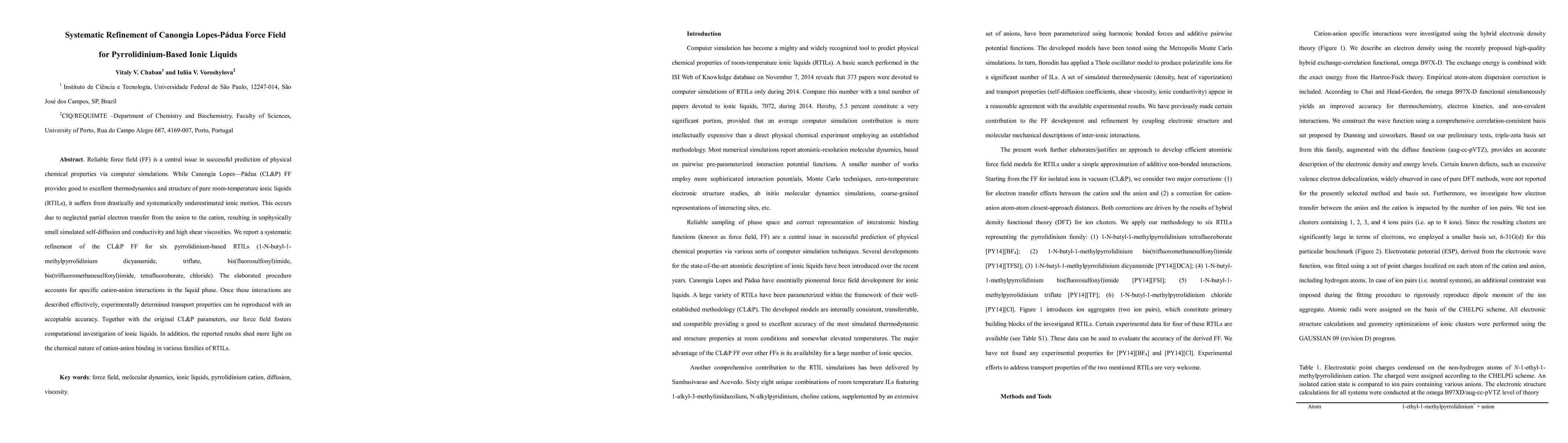 Reliable force field (FF) is a central issue in successful prediction of physical chemical properties via computer simulations. Together with the original CL-P parameters, our force field fosters computational investigation of ionic liquids. In addition, the reported results shed more light on the chemical nature of cation-anion binding in various families of RTILs.