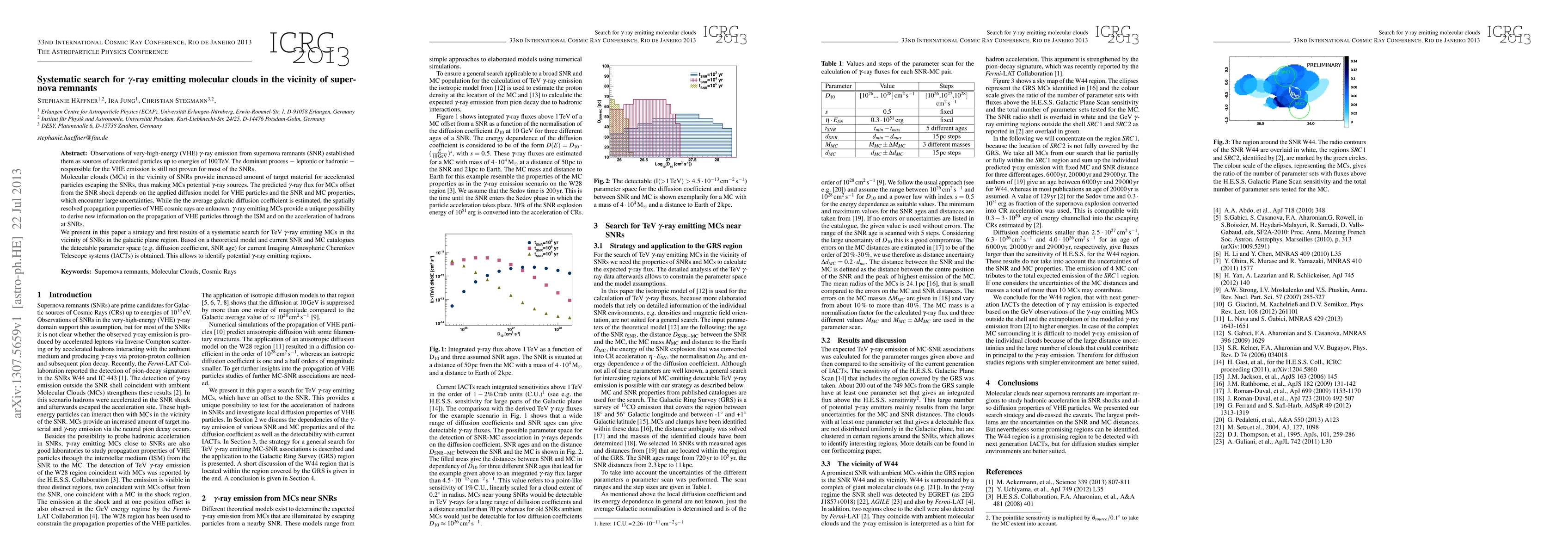 This paper outlines a systematic search for TeV gamma-ray emitting molecular clouds near supernova remnants, aiming to understand the propagation of very-high-energy cosmic rays and the acceleration of hadrons. Initial results identify potential gamma-ray emitting regions based on theoretical models and current catalogs.