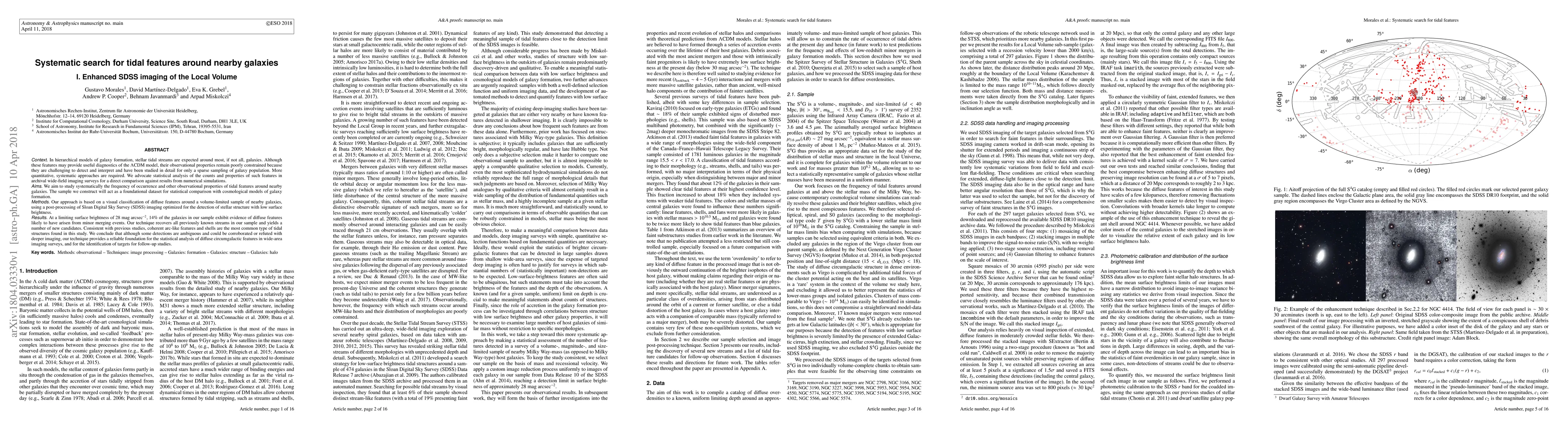 This paper systematically searches for tidal features around nearby galaxies using enhanced SDSS imaging, finding that 14% of galaxies exhibit diffuse features likely from minor mergers. The study provides a foundational dataset for comparing observations with cosmological models, identifying new tidal stream candidates and confirming previous detections.