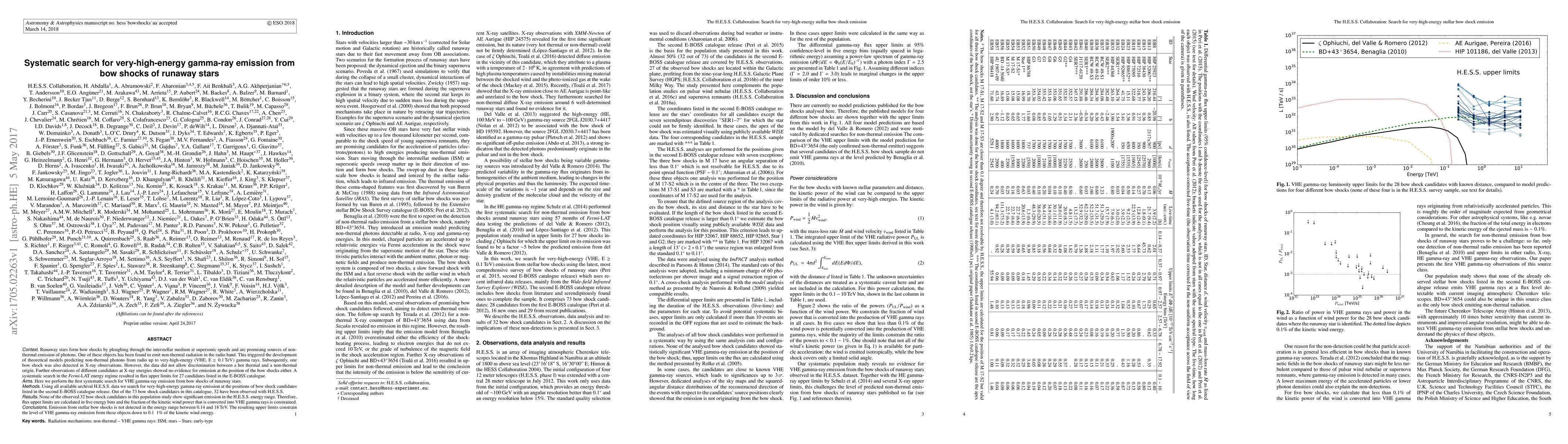 This study systematically searched for very-high-energy gamma-ray emission from bow shocks of runaway stars using H.E.S.S. data, finding no significant emission in 32 observed candidates. The results constrain VHE gamma-ray emission to less than 0.1-1% of the kinetic wind power.