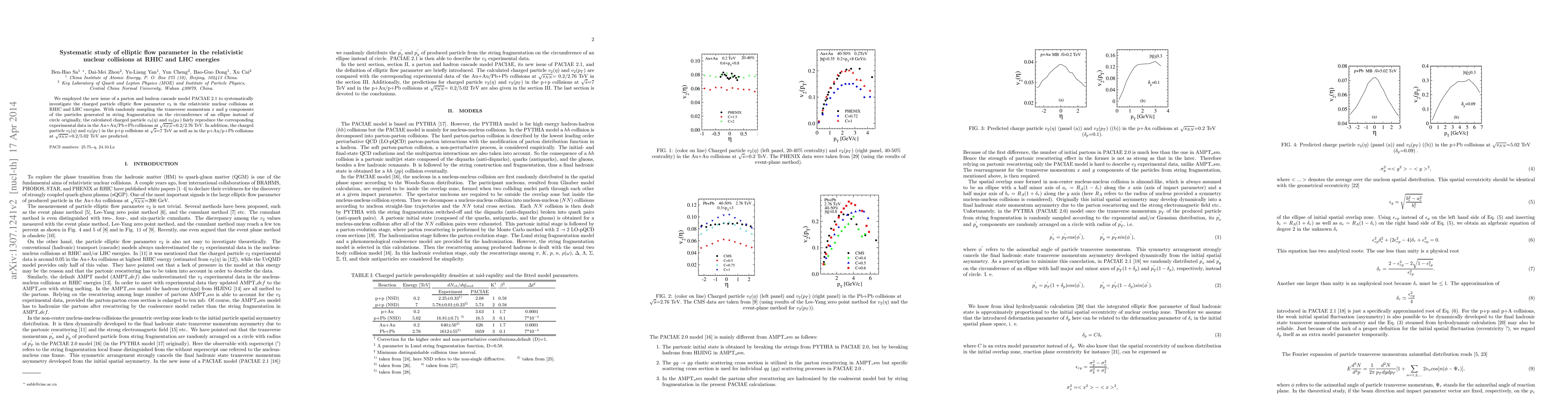 We employed the new issue of a parton and hadron cascade model PACIAE 2.1 to systematically investigate the charged particle elliptic flow parameter $v_2$ in the relativistic nuclear collisions at RHIC and LHC energies. With randomly sampling the transverse momentum $x$ and $y$ components of the particles generated in string fragmentation on the circumference of an ellipse instead of circle originally, the calculated charged particle $v_2(\eta)$ and $v_2(p_T)$ fairly reproduce the corresponding experimental data in the Au+Au/Pb+Pb collisions at $\sqrt{s_{NN}}$=0.2/2.76 TeV. In addition, the charged particle $v_2(\eta)$ and $v_2(p_T)$ in the p+p collisions at $\sqrt s$=7 TeV as well as in the p+Au/p+Pb collisions at $\sqrt{s_{NN}}$=0.2/5.02 TeV are predicted.