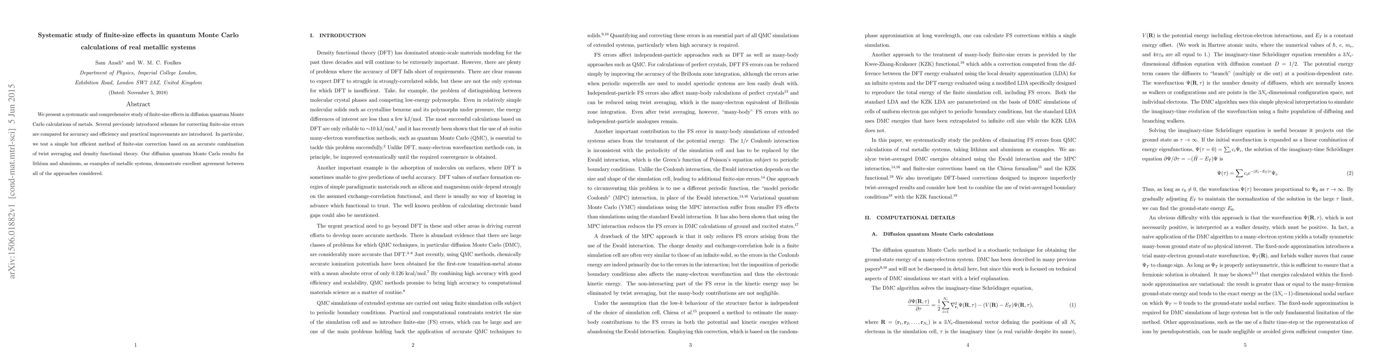 This paper systematically investigates finite-size effects in quantum Monte Carlo calculations for metals, comparing various correction schemes and introducing practical improvements. The study finds excellent agreement among different methods, particularly highlighting a new efficient correction method combining twist averaging and density functional theory.
