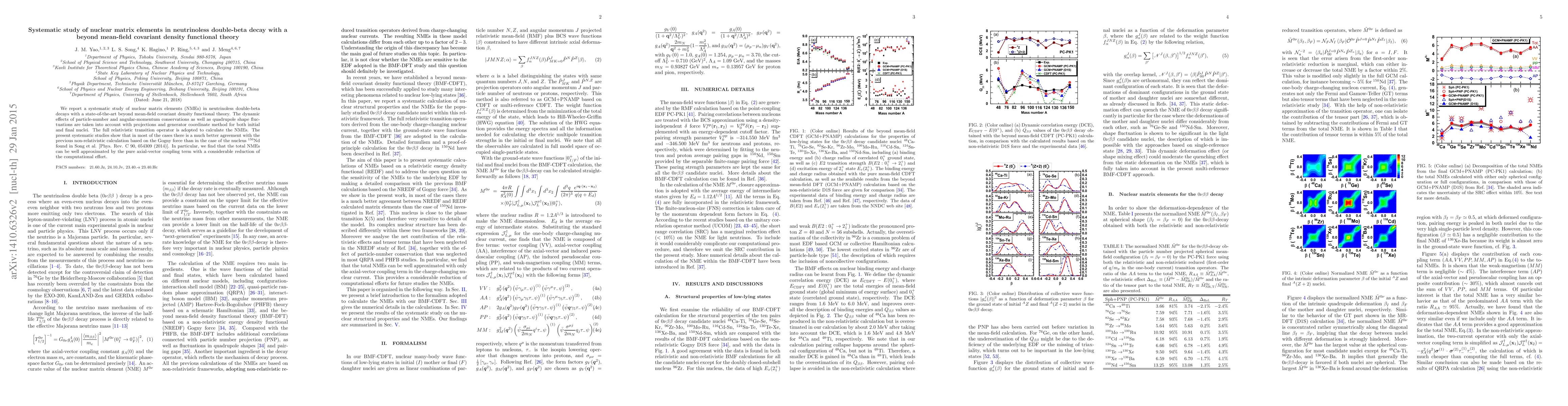 This study systematically investigates nuclear matrix elements for neutrinoless double-beta decay using advanced covariant density functional theory, showing improved agreement with previous non-relativistic calculations, especially for most nuclei, and demonstrating that total NMEs can be approximated by the axial-vector coupling term.