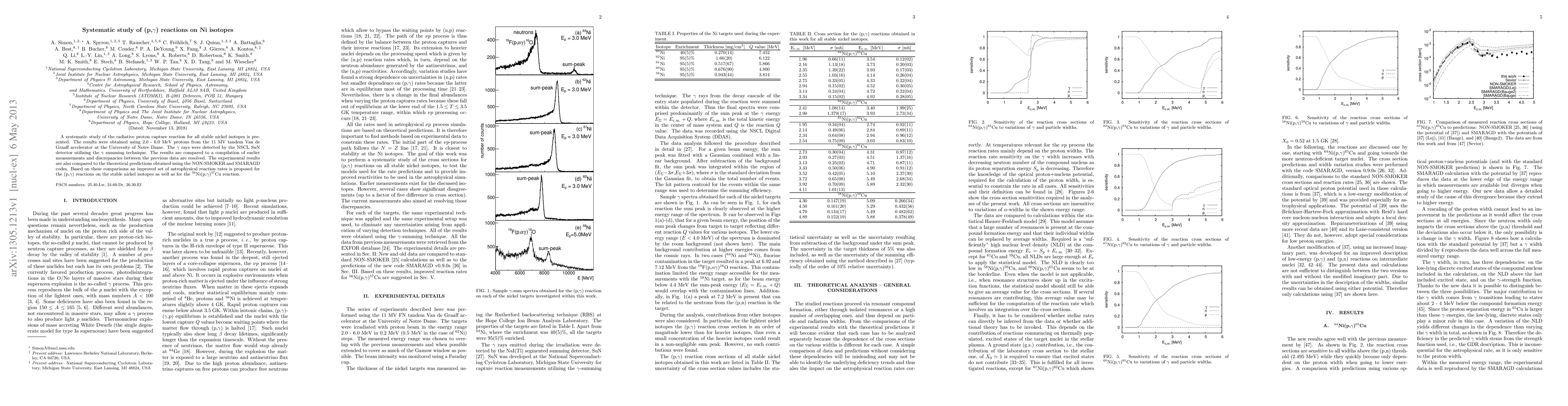 A systematic study of the radiative proton capture reaction for all stable nickel isotopes is presented. The results were obtained using 2.0 - 6.0 MeV protons from the 11 MV tandem Van de Graaff accelerator at the University of Notre Dame. The \gamma-rays were detected by the NSCL SuN detector utilising the \gamma-summing technique. The results are compared to a compilation of earlier measurements and discrepancies between the previous data are resolved. The experimental results are also compared to the theoretical predictions obtained using the NON-SMOKER and SMARAGD codes. Based on these comparisons an improved set of astrophysical reaction rates is proposed for the (p,\gamma) reactions on the stable nickel isotopes as well as for the 56Ni(p,\gamma)57Cu reaction.
