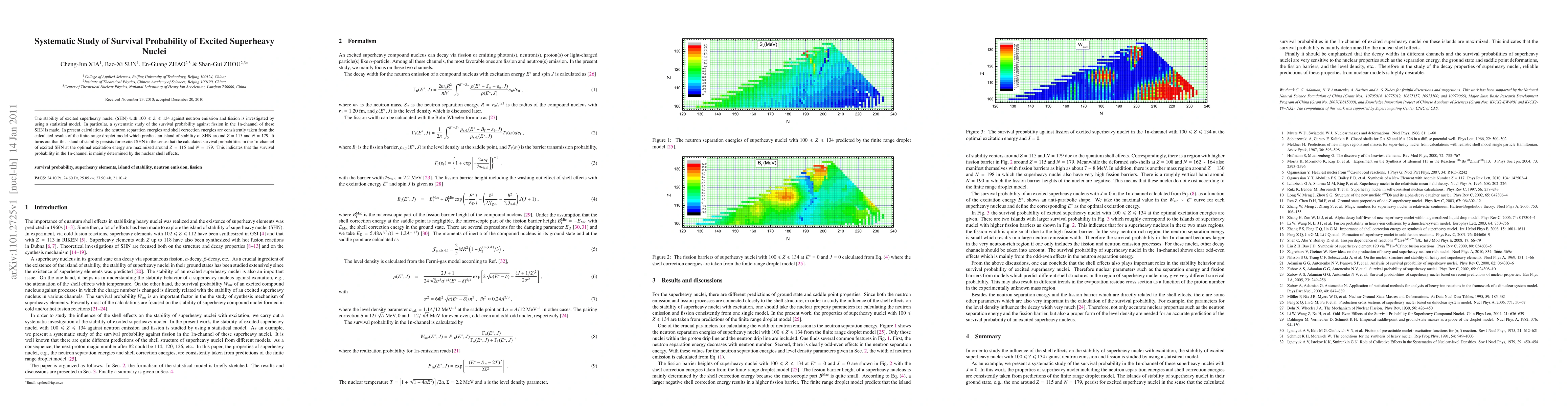 The stability of excited superheavy nuclei (SHN) with $100 \leq Z \leq 134$ against neutron emission and fission is investigated by using a statistical model. In particular, a systematic study of the survival probability against fission in the 1n-channel of these SHN is made. In present calculations the neutron separation energies and shell correction energies are consistently taken from the calculated results of the finite range droplet model which predicts an island of stability of SHN around Z=115 and N=179. It turns out that this island of stability persists for excited SHN in the sense that the calculated survival probabilities in the 1n-channel of excited SHN at the optimal excitation energy are maximized around Z=115 and N=179. This indicates that the survival probability in the 1n-channel is mainly determined by the nuclear shell effects.