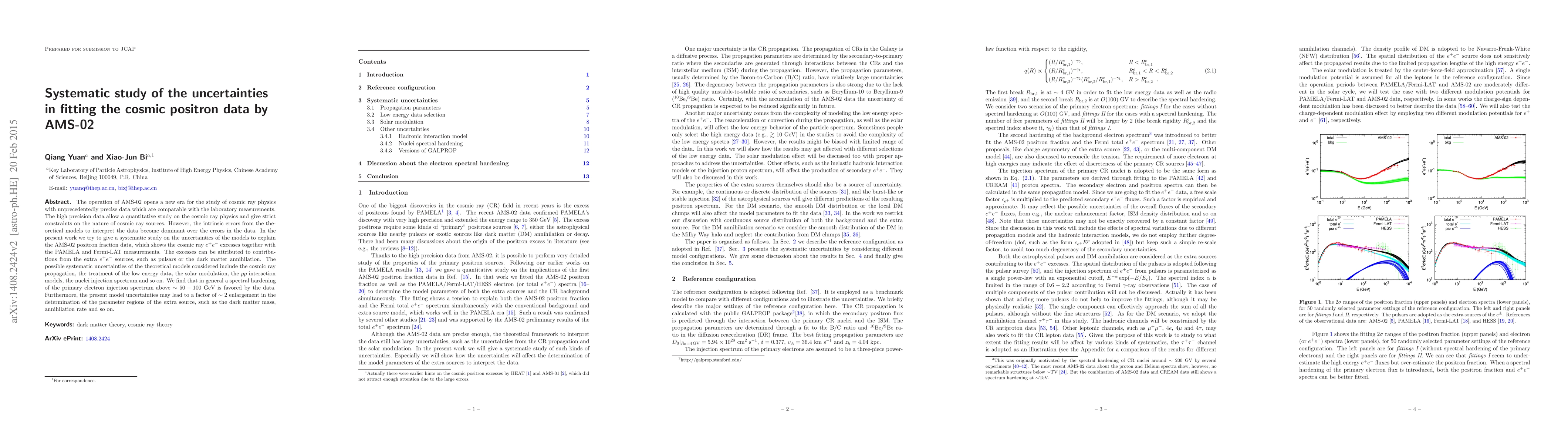 The paper presents a comprehensive analysis of uncertainties in fitting cosmic positron data, employing a systematic approach to evaluate the impact of various model assumptions on the interpretation of AMS-02 measurements.