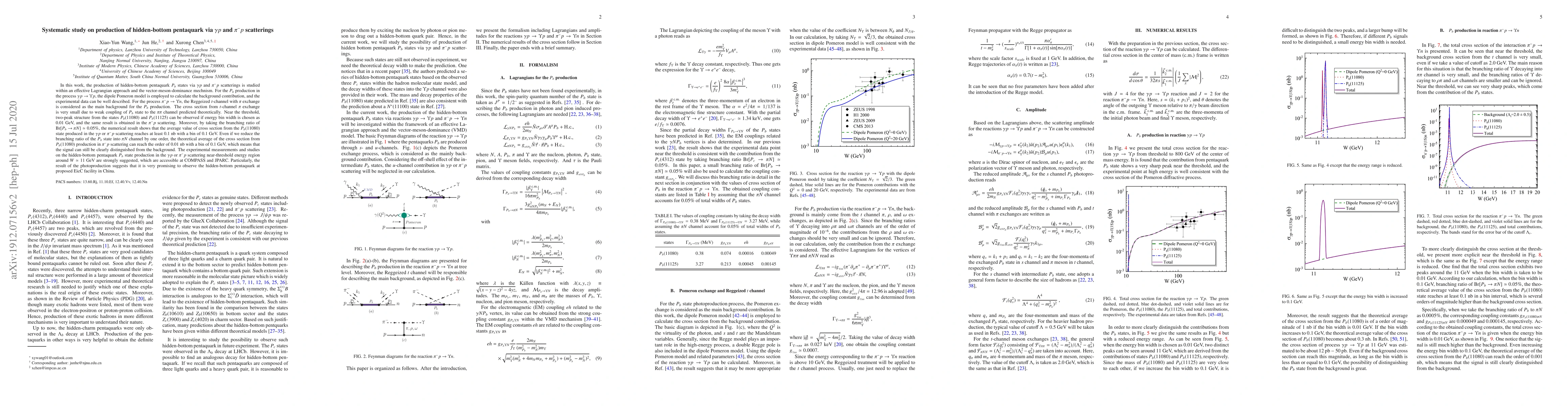 This paper investigates the production of hidden-bottom pentaquark $P_{b}$ states via $\gamma p$ and $\pi ^{-}p$ scatterings using an effective Lagrangian approach and vector-meson-dominance mechanism. The study suggests that the $P_{b}$ states can be observed near the threshold with a two-peak structure, indicating the potential for clear signal detection at COMPASS, JPARC, and the proposed EicC facility.