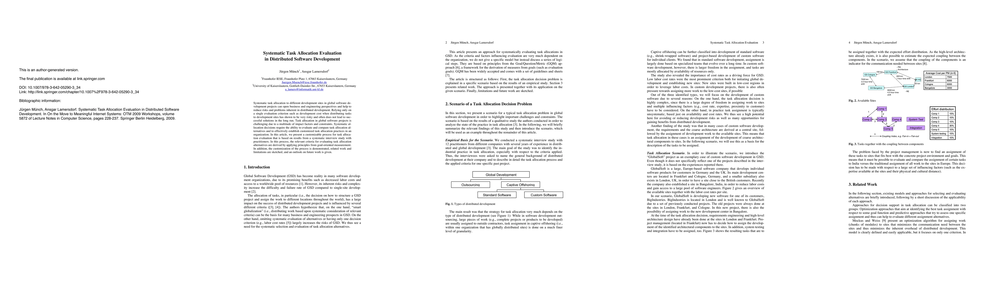This paper proposes a customizable process for evaluating task allocation in global software development projects, emphasizing the need for multiple criteria beyond cost. It derives relevant evaluation criteria from a systematic interview study and outlines the process's customization, along with discussing related work and future directions.