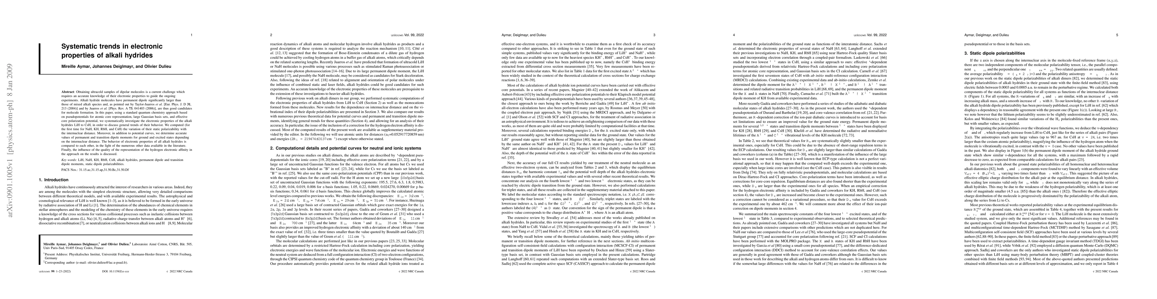 Obtaining ultracold samples of dipolar molecules is a current challenge which requires an accurate knowledge of their electronic properties to guide the ongoing experiments. Alkali hydride molecules have permanent dipole significantly larger than those of mixed alkali species and, as pointed out by Taylor-Juarros et al. [Eur. Phys. J. D 31, 213 (2004)] and by Juarros et al. [Phys. Rev. A 73, 041403 (2006)], are thus good candidates for molecule formation. In this paper, using a standard quantum chemistry approach based on pseudopotentials for atomic core representation, large Gaussian basis sets, and effective core polarization potential, we systematically investigate the electronic properties of the alkali hydrides LiH to CsH, in order to discuss general trends of their behavior. We computed (for the first time for NaH, KH, RbH, and CsH) the variation of their static polarizability with the internuclear distance. Moreover, in addition to potential curves, we determine accurate values of permanent and transition dipole moments for ground and excited states depending on the internuclear distance. The behavior of electronic properties of all alkali hydrides is compared to each other, in the light of the numerous other data available in the literature. Finally, the influence of the quality of the representation of the hydrogen electronic affinity in the approach on the results is discussed.