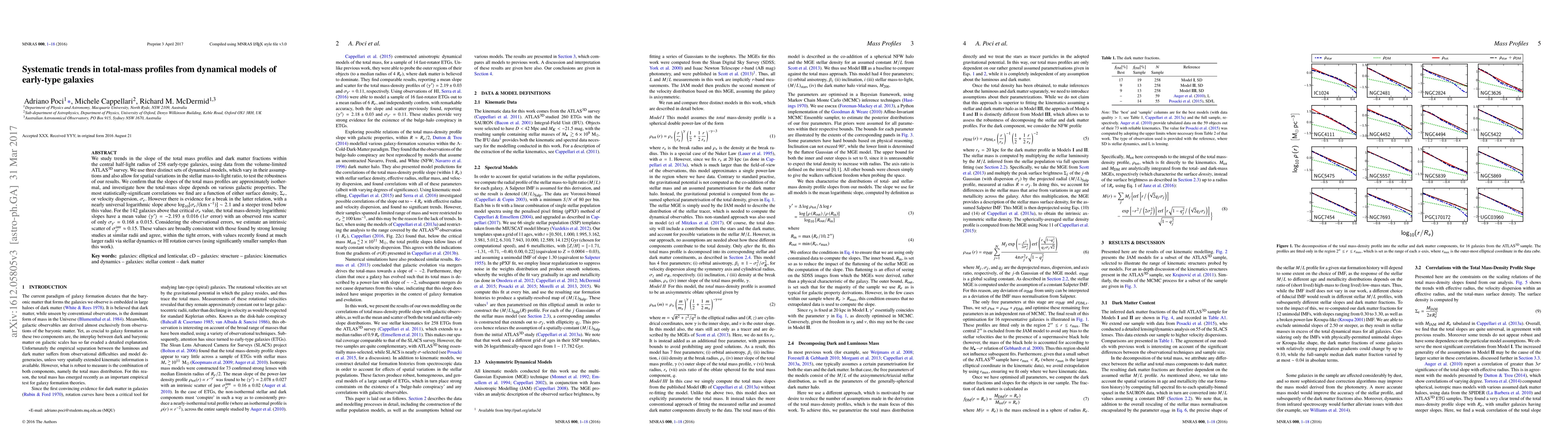 We study trends in the slope of the total mass profiles and dark matter fractions within the central half-light radius of 258 early-type galaxies, using data from the volume-limited ATLAS$^{\mathrm{3D}}$ survey. We use three distinct sets of dynamical models, which vary in their assumptions and also allow for spatial variations in the stellar mass-to-light ratio, to test the robustness of our results. We confirm that the slopes of the total mass profiles are approximately isothermal, and investigate how the total-mass slope depends on various galactic properties. The most statistically-significant correlations we find are a function of either surface density, \(\Sigma_e\), or velocity dispersion, \(\sigma_e\). However there is evidence for a break in the latter relation, with a nearly universal logarithmic slope above \(\log_{10}[\sigma_e/(\si{km~s^{-1}})]\sim 2.1\) and a steeper trend below this value. For the 142 galaxies above that critical \(\sigma_e\) value, the total mass-density logarithmic slopes have a mean value \(\left\langle\gamma^\prime\right\rangle = -2.192 \pm 0.016\) (\(1\sigma\) error) with an observed rms scatter of only \(\sigma_{\gamma^\prime}=0.167 \pm 0.016\). Considering the observational errors, we estimate an intrinsic scatter of \(\sigma_{\gamma^\prime}^\mathrm{intr} \approx 0.15\). These values are broadly consistent with those found by strong lensing studies at similar radii and agree, within the tight errors, with values recently found at much larger radii via stellar dynamics or HI rotation curves (using significantly smaller samples than this work).