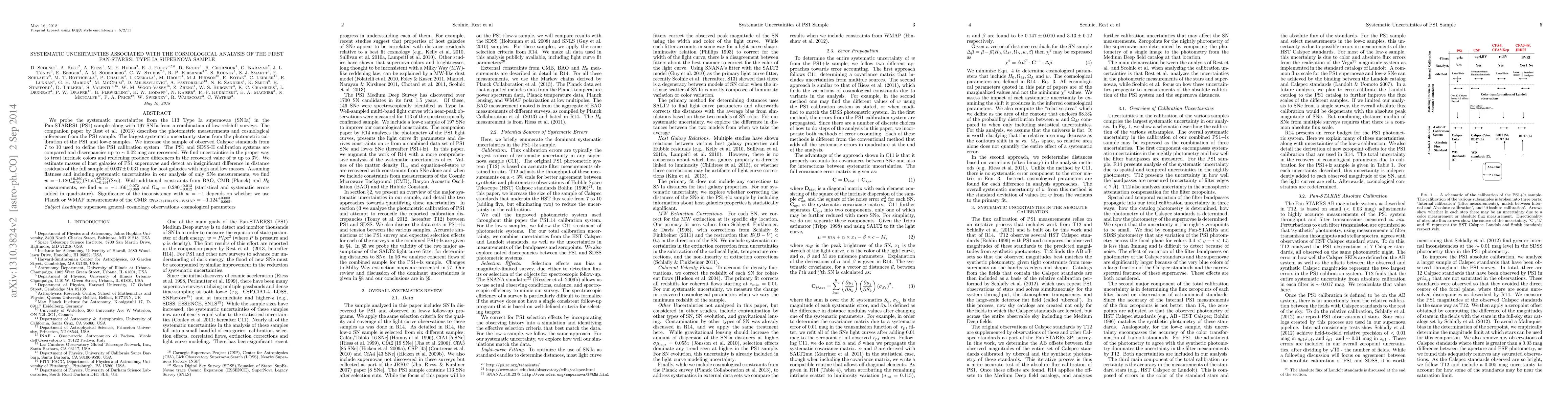 We probe the systematic uncertainties from 113 Type Ia supernovae (SNIa) in the Pan-STARRS1 (PS1) sample along with 197 SN Ia from a combination of low-redshift surveys. The companion paper by Rest et al. (2013) describes the photometric measurements and cosmological inferences from the PS1 sample. The largest systematic uncertainty stems from the photometric calibration of the PS1 and low-z samples. We increase the sample of observed Calspec standards from 7 to 10 used to define the PS1 calibration system. The PS1 and SDSS-II calibration systems are compared and discrepancies up to ~0.02 mag are recovered. We find uncertainties in the proper way to treat intrinsic colors and reddening produce differences in the recovered value of w up to 3%. We estimate masses of host galaxies of PS1 supernovae and detect an insignificant difference in distance residuals of the full sample of 0.037\pm0.031 mag for host galaxies with high and low masses. Assuming flatness in our analysis of only SNe measurements, we find $w = {-1.120^{+0.360}_{-0.206}\textrm{(Stat)} ^{+0.269}_{-0.291}\textrm{(Sys)}}$. With additional constraints from BAO, CMB(Planck) and H0 measurements, we find $w = -1.166^{+0.072}_{-0.069}$ and $\Omega_M=0.280^{+0.013}_{-0.012}$ (statistical and systematic errors added in quadrature). Significance of the inconsistency with $w=-1$ depends on whether we use Planck or WMAP measurements of the CMB: $w_{\textrm{BAO+H0+SN+WMAP}}=-1.124^{+0.083}_{-0.065}$.
