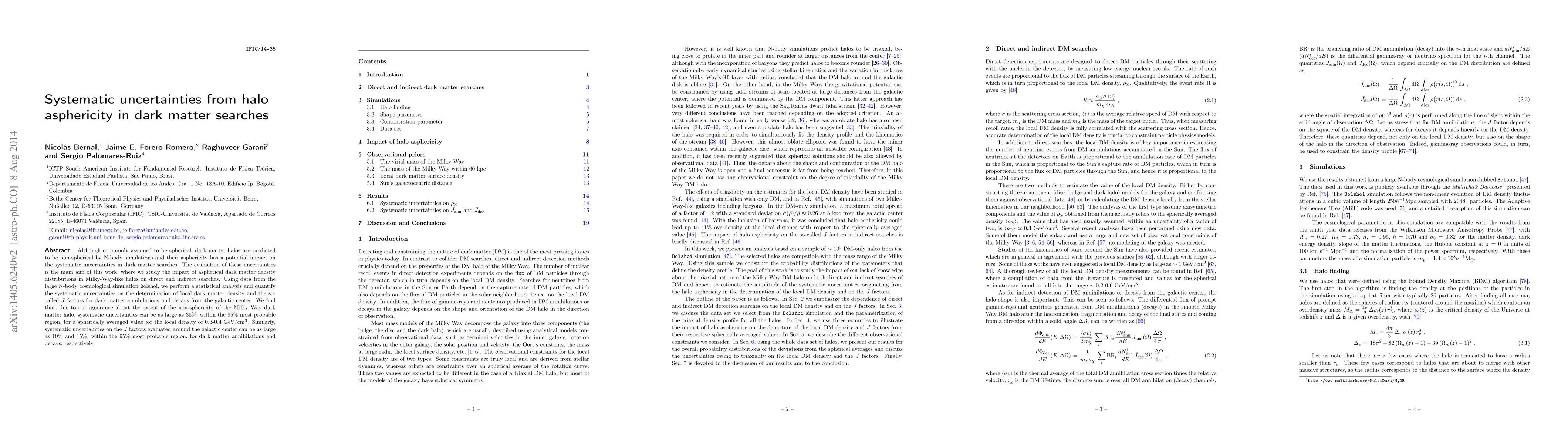 This paper evaluates the systematic uncertainties in dark matter searches due to the non-spherical nature of dark matter halos, as predicted by N-body simulations. It finds that asphericity can introduce uncertainties up to 35% in local dark matter density and up to 10% and 15% in $J$ factors for dark matter annihilations and decays, respectively.