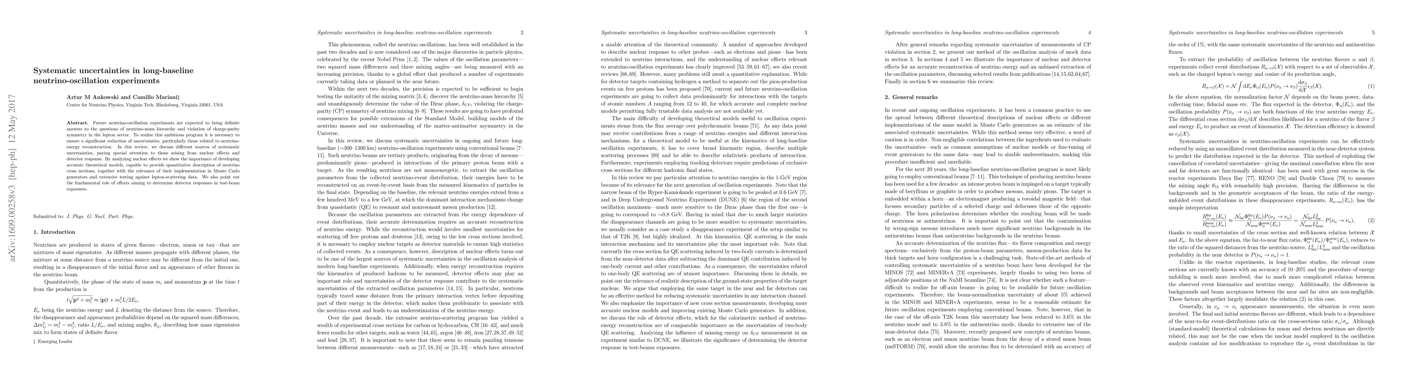 This paper examines systematic uncertainties in long-baseline neutrino-oscillation experiments, emphasizing the need for reducing uncertainties in neutrino-energy reconstruction. It highlights the importance of accurate theoretical models for neutrino cross sections and detector response determination through test-beam exposures.