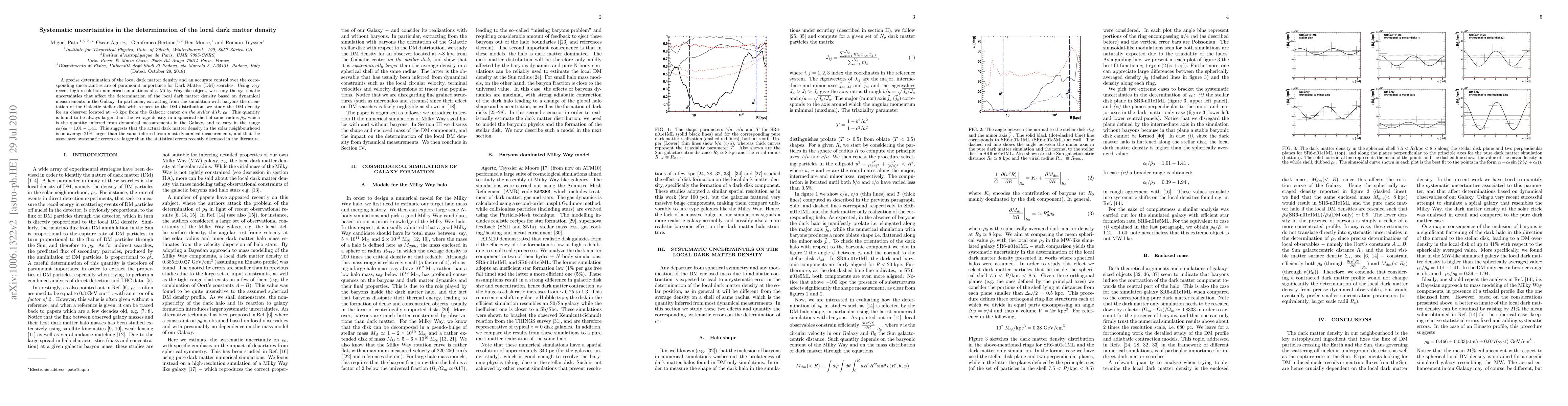 This paper investigates the systematic uncertainties affecting the local dark matter density determination using high-resolution simulations. It finds that the density inferred from the orientation of the Galactic stellar disk is 21% higher than that from spherical shell averages, suggesting larger systematic errors than previously considered.