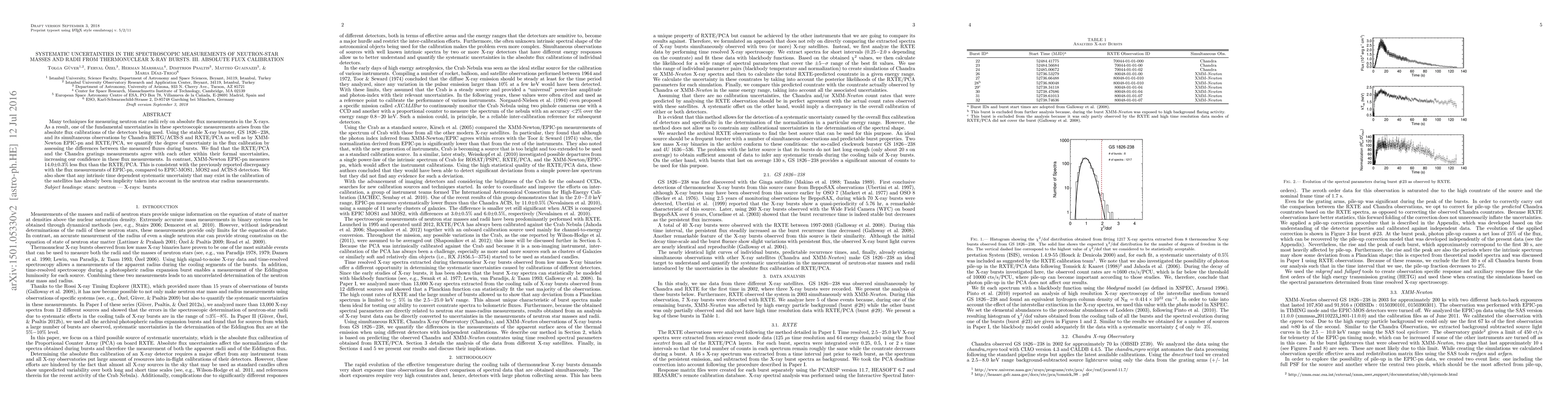 This paper investigates the systematic uncertainties in the absolute flux calibrations used in spectroscopic measurements of neutron star masses and radii, focusing on X-ray bursts. The study finds that while RXTE/PCA and Chandra gratings agree within uncertainties, XMM-Newton EPIC-pn measures 14.0±0.3% less flux, confirming previous discrepancies.