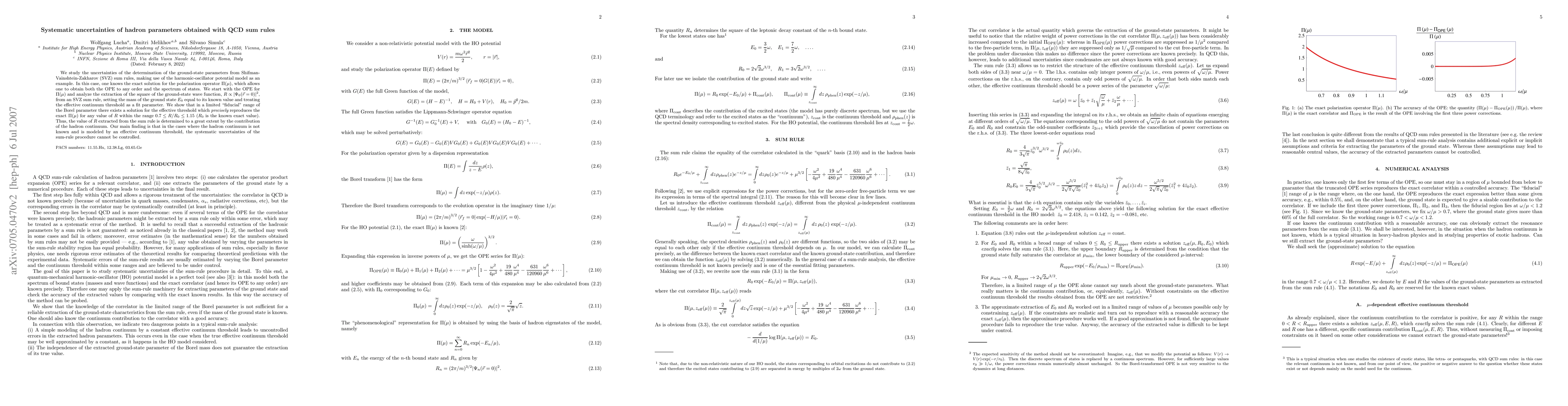 This paper investigates the systematic uncertainties in determining hadron ground-state parameters from Shifman-Vainshtein-Zakharov (SVZ) sum rules using the harmonic-oscillator potential model. It finds that the extracted value of the ground-state wave function is largely dependent on the modeled hadron continuum, indicating that uncertainties cannot be controlled when the continuum is not precisely known.
