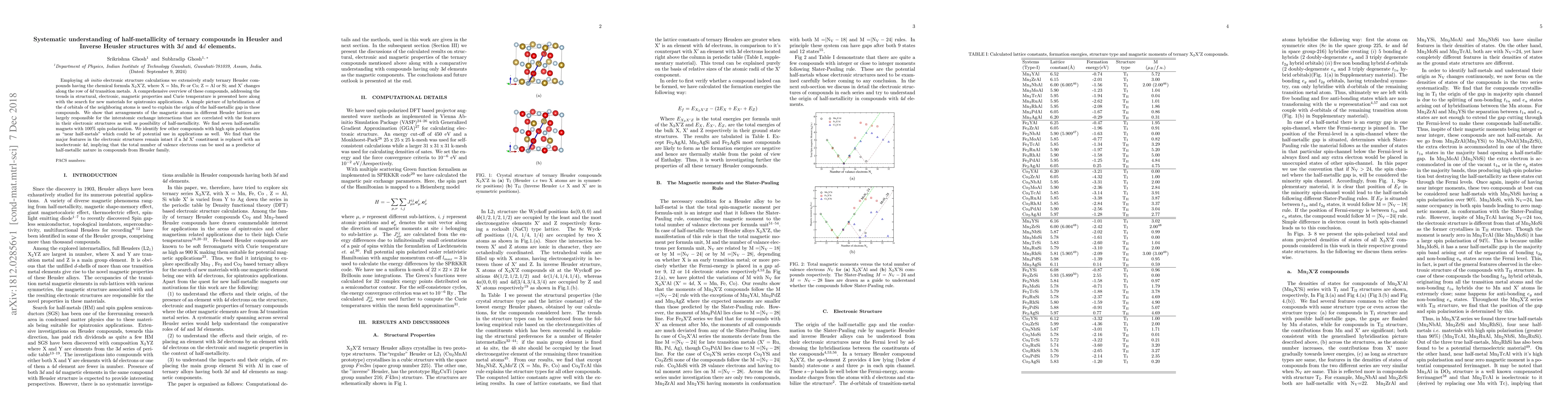 This paper uses {\it ab initio} calculations to study ternary Heusler compounds with 3$d$ and 4$d$ elements, focusing on half-metallicity. The study identifies seven compounds with 100\% spin polarization and several "near half-metals," highlighting the role of magnetic atom arrangements in determining electronic properties and potential spintronics applications.